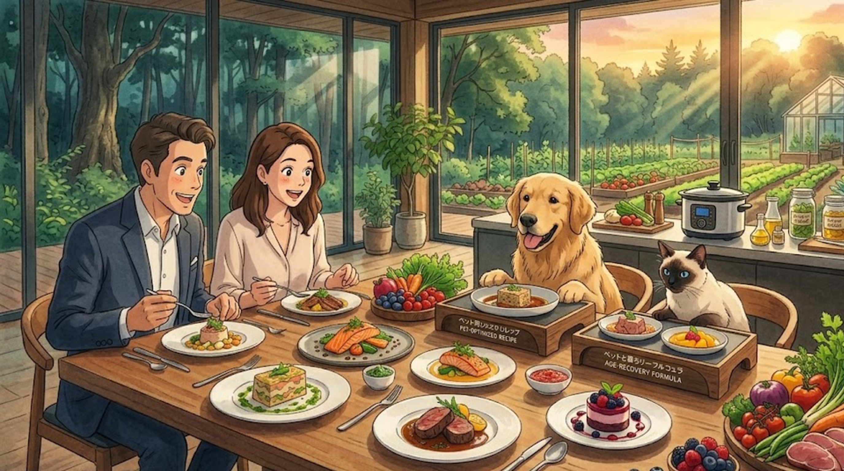 人間用とペット用で食材やメニューを分けるのではなく、調理法と自然の力で、人間が食べて感動するほど美味しく、かつペットの健康寿命を劇的に延ばす「フルコース」を提供します。