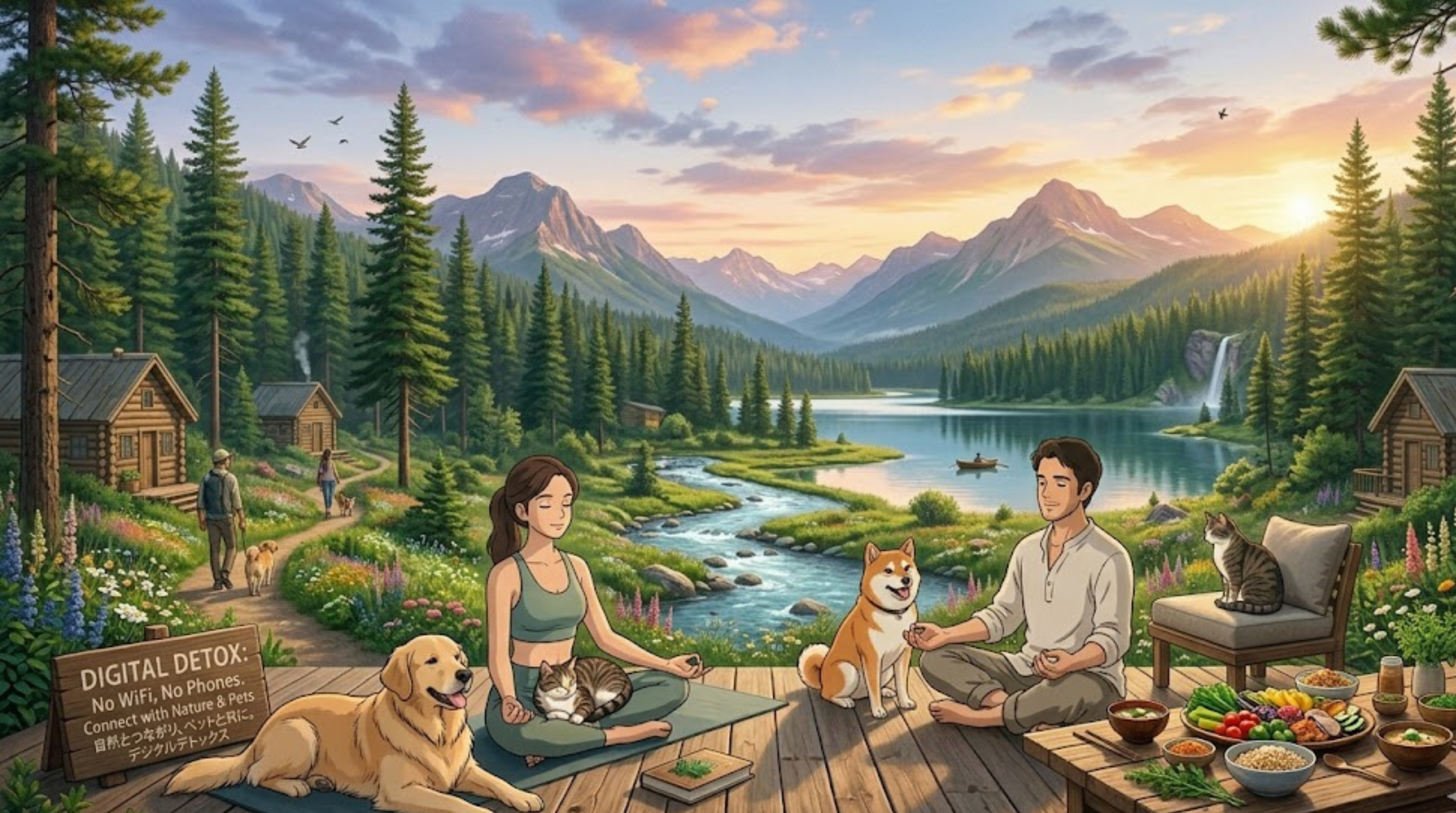 人間と愛犬・愛猫が一緒に滞在し、大自然の中でデジタルデトックスをしながら、腸内環境から自律神経までを完全にリセットする「1週間のリカバリープログラム」を提供します。