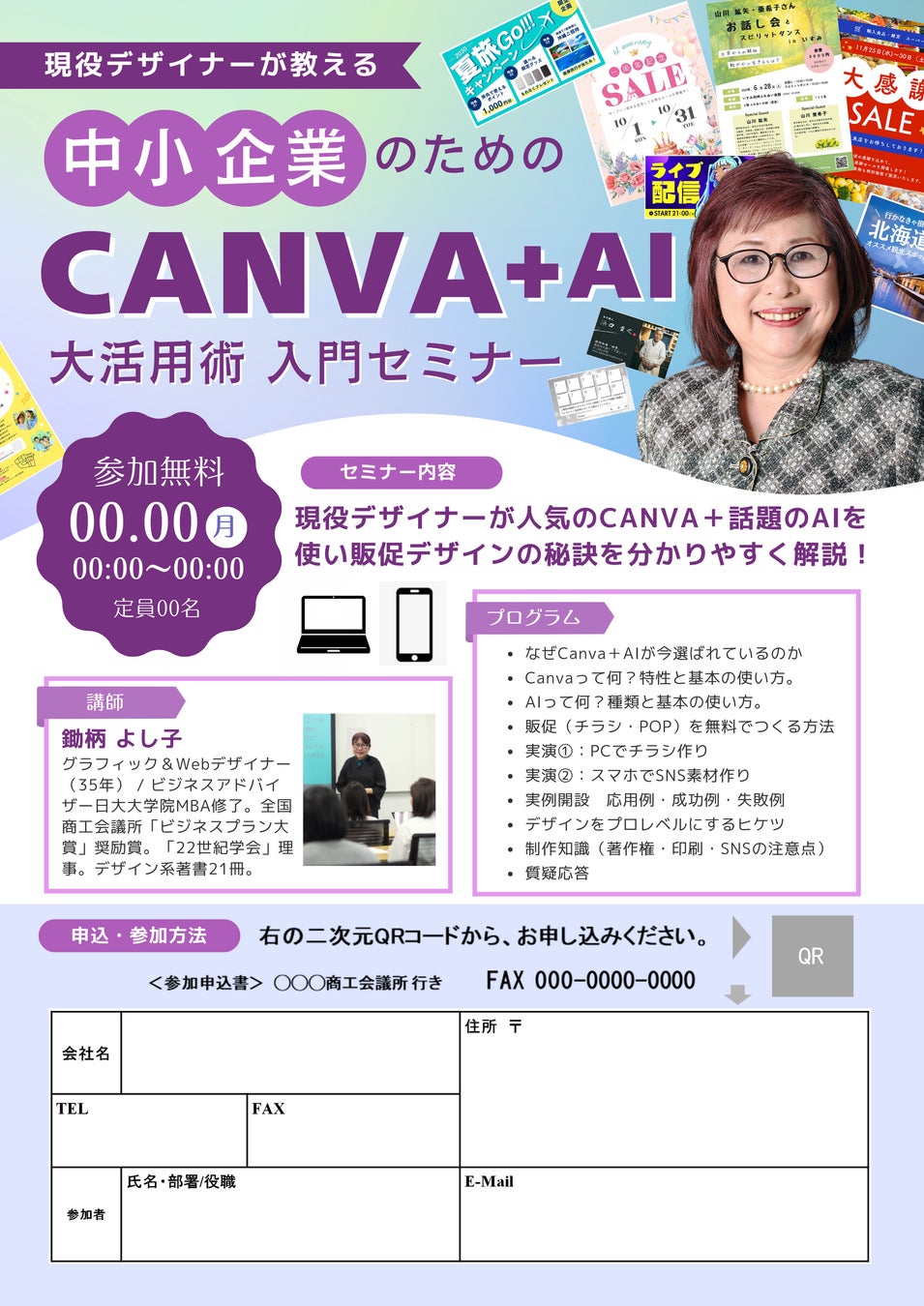 「CANVA+AI入門」などテーマでもビジネスセミナー講師活動中