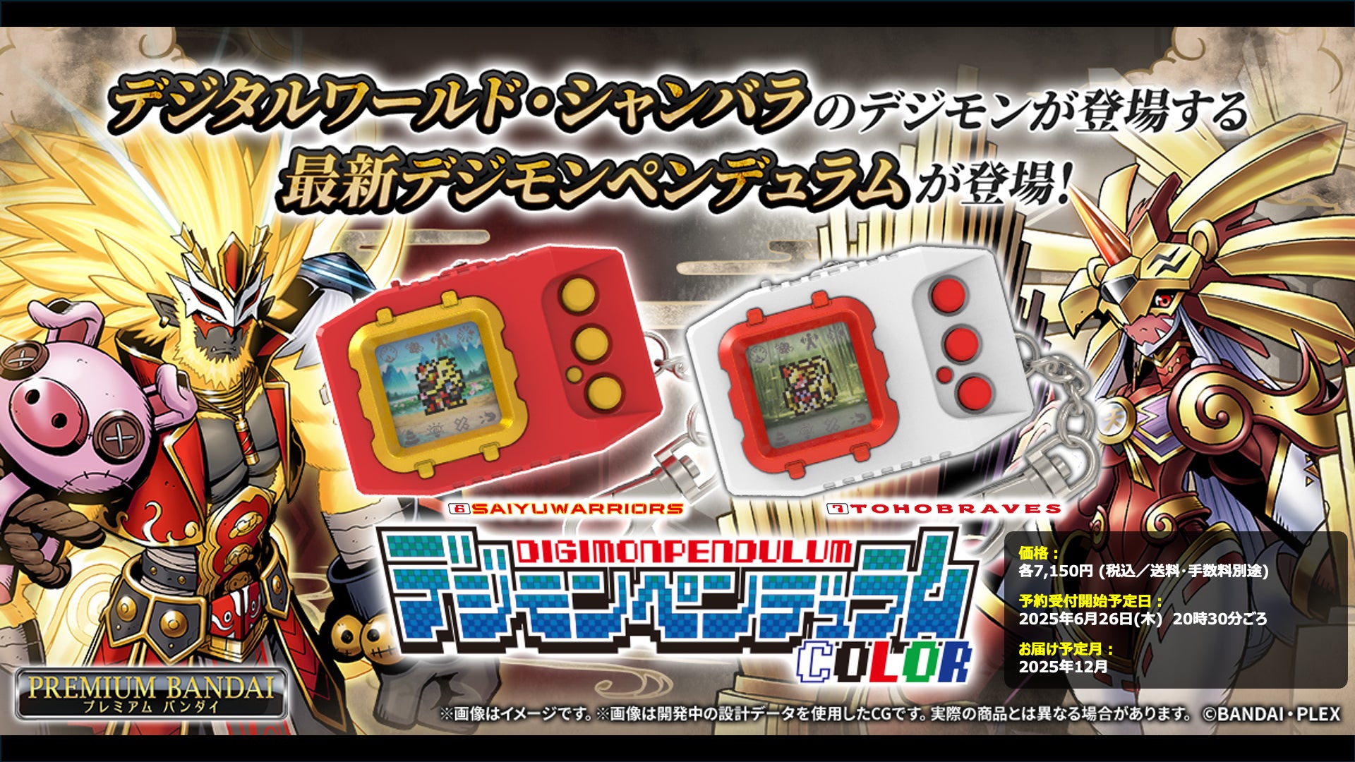 デジモンペンデュラムCOLORに新しい商品が加わりました!2000年に発売した「デジモンペンデュラム ZERO」から25年ぶりのナンバリングタイトルで、東方のデジタルワールドをテーマにした新しいデジモンが多数登場します。「サイユウウォリアーズ」と「トウホウブレイブス」の2種類を展開!デジモンWEBでは東方のデジタルワールドの世界観を紹介する特設ページを公開中です。