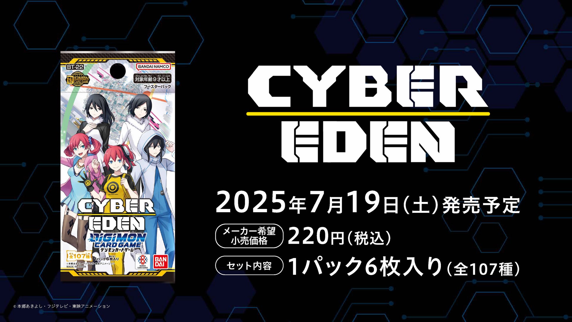 7月19日にはゲーム『デジモンストーリー サイバースルゥース』に登場したデジモン・テイマー達を収録したブースターパック、第22弾「サイバーエデン」が7月19日に発売!ゲームファン必見のデザインに注目です。