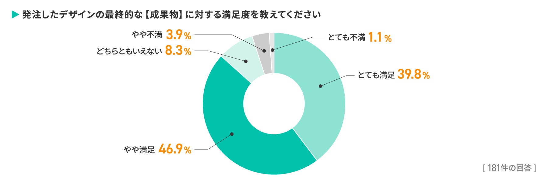 今回の調査から、デザイン外注は多くの企業で一般化しており、納品される成果物に対する満足度は 86.7% と高いことが明らかになりました。