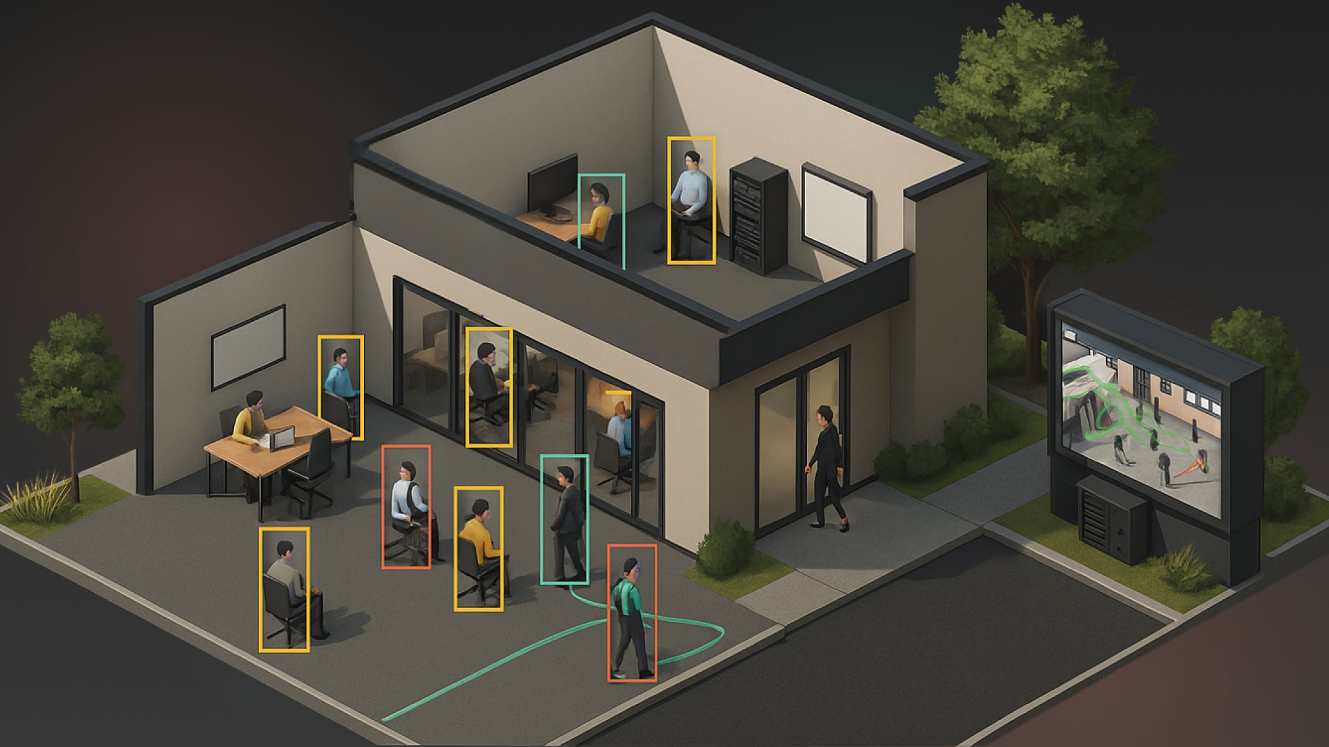個人トラッキングにより勤務時間や滞在時間を自動記録し、動線の可視化で業務効率化を図ります。また、集団トラッキング(人流解析)により、混雑エリアの把握や空調の自動制御による施設運営の最適化も可能です。さらに、立ち入り禁止エリアへの侵入検知や異常行動の早期発見といったセキュリティ強化への応用可能性も広がっており、「人の動き」を読み解くAIとして、さらなる応用展開を見据えています。