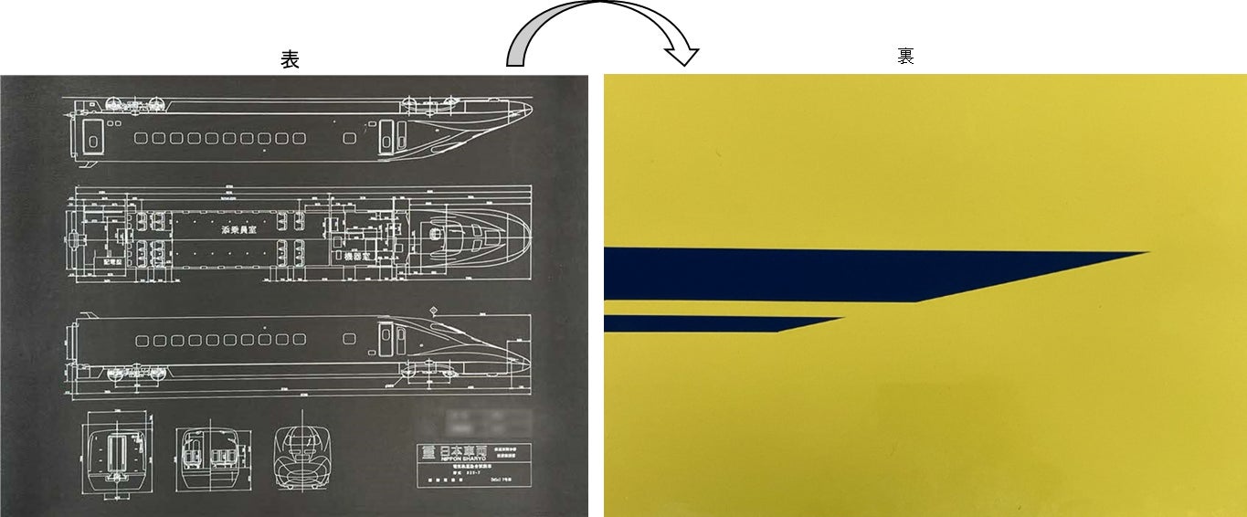 引退したドクターイエローの廃車から再生したアルミに7号車の車両形式図をレーザー彫刻した限定オプション品