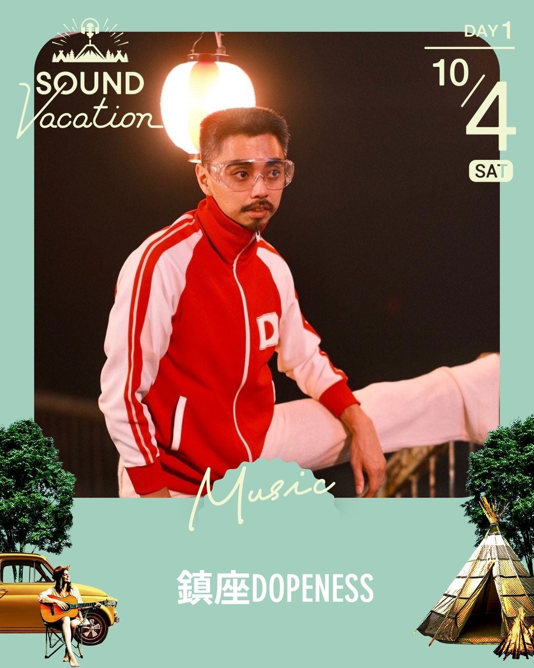 スチャダラパー、さらさ(Solo Set)、鎮座DOPENESS、ASOUND、韻シストBANDなど個性豊かなアーティストたちのグルーヴが、心と体をゆるめてくれる。キャンプやワークショップ、のんびり過ごせる空間が広がる会場は、まさに「リゾートみたいな休日」。