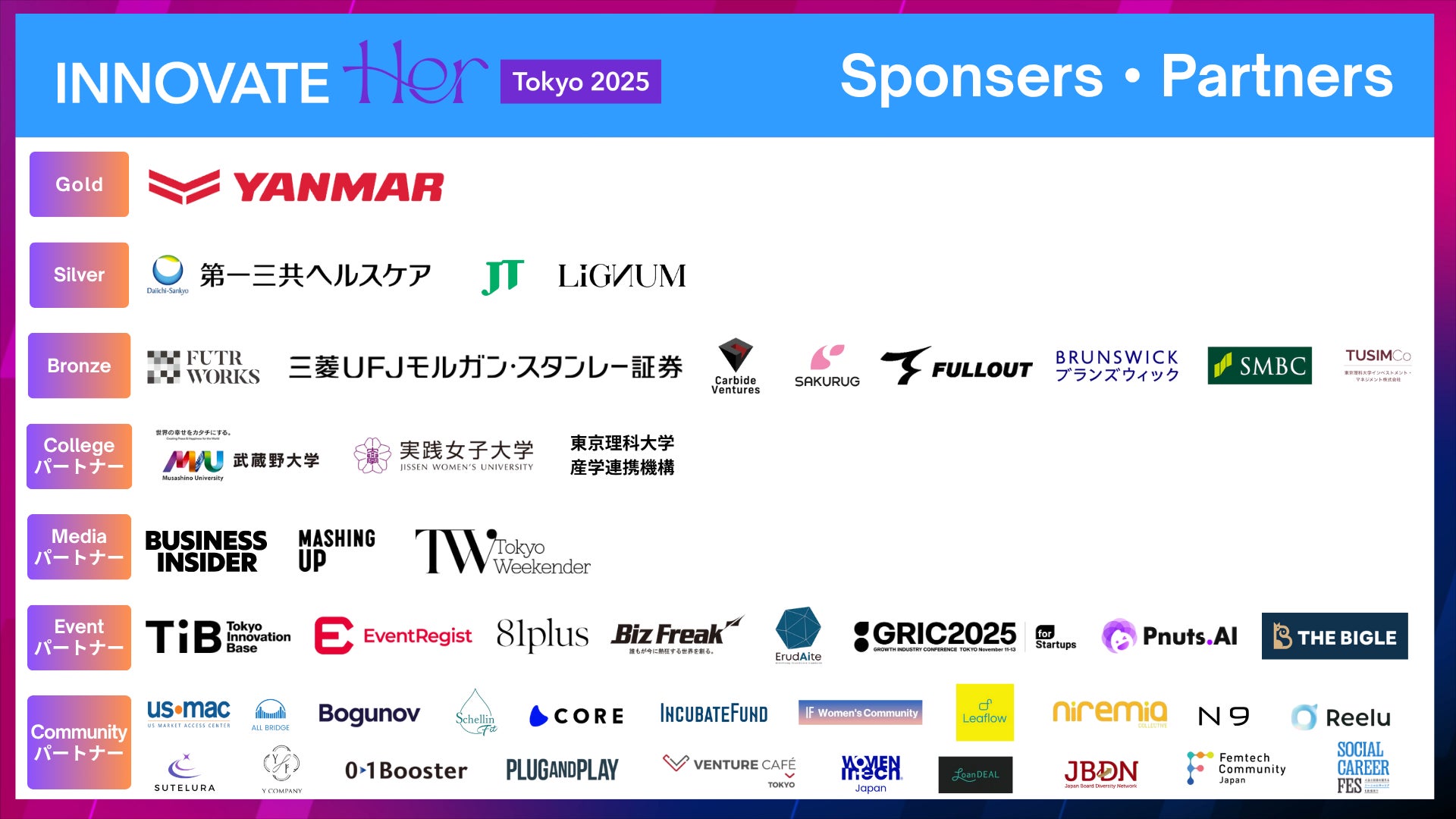 後援:東京都、JETRO、スタートアップエコシステム協会、EmpowerHer、MPower Partners