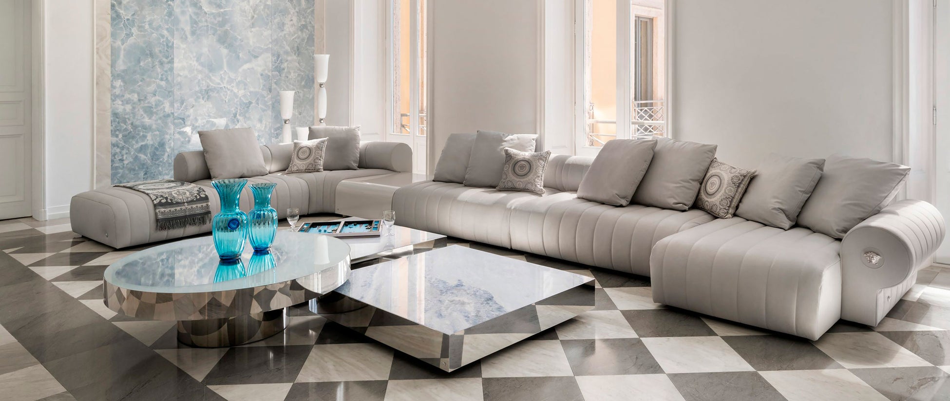 ヴェルサーチェ・ホームならではのリュクスなフォルム、豪華な張り地が織りなす洗練のインテリアを、ユーロ・カーサのショールームでお確かめください。