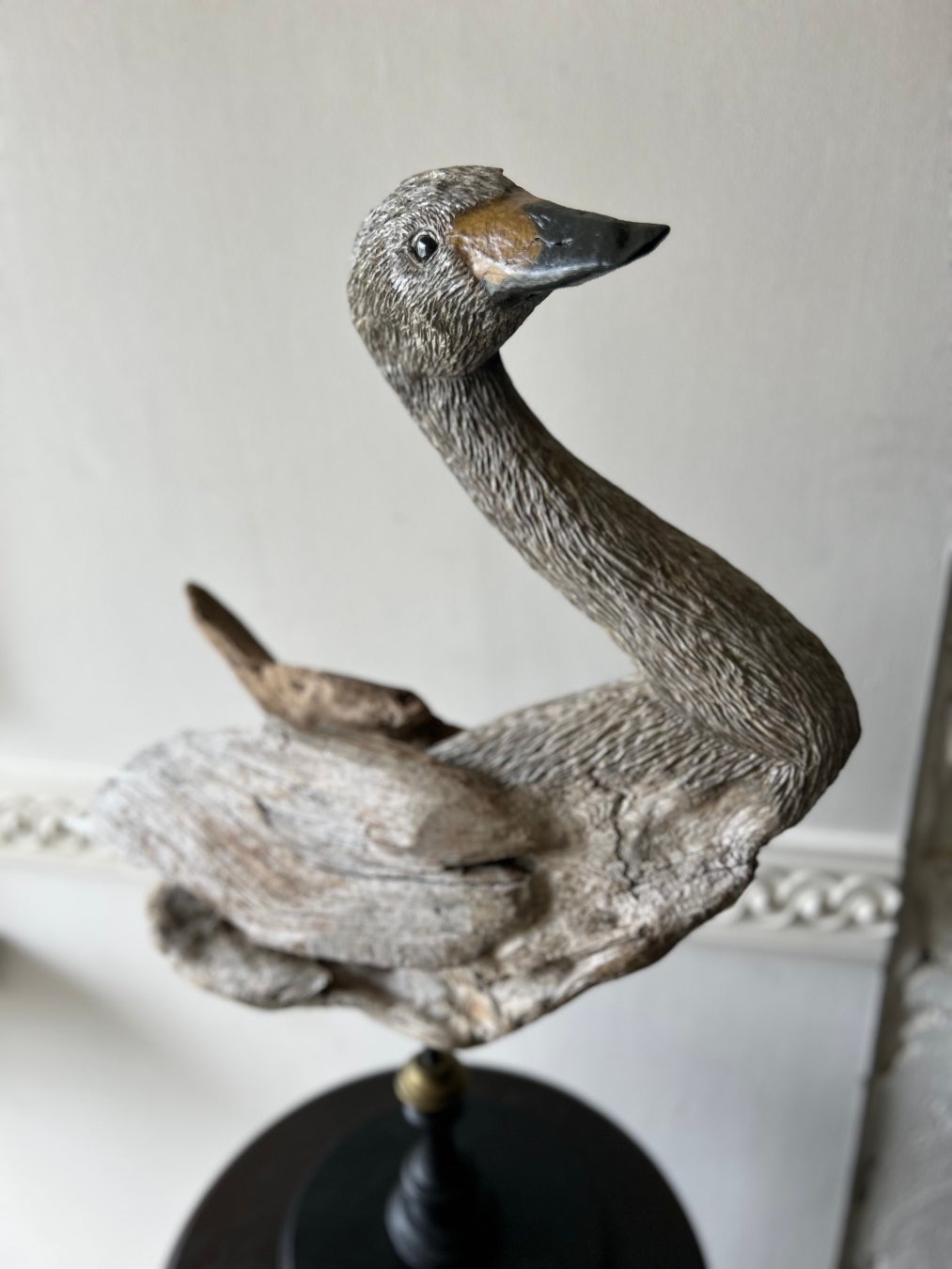 昭和レトロ家具店運営で培った「古いものへのまなざし」を背景に、2023年より流木を動物へと見立てる彫刻を始動。樹皮や割れ、枝振りなど海が刻んだ形を活かし、人の手を最小限添えて命の余白を宿す。大量消費に埋もれる素材に新たな可愛さと価値を与え、2024年銀座FBIギャラリー初個展で全11作完売、さらなる展開が期待される。家具再生で磨いた審美眼を継ぎ、刻々と変化する自然の痕跡と人の意図を交差させる作品は、鑑賞者に時間の層と呼吸を感じさせる。