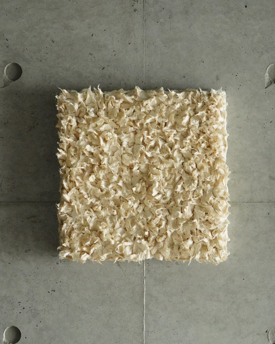 世界最薄の手漉き和紙として知られる「土佐典具帖紙」を繊維の域にまで解し、精緻な千切り絵という技法でまるで剥製のような迫力を生み出す作家〈Aki Yamanaka〉。そして同じく天然繊維を扱い、ラグというかたちで空間の価値を高める新進気鋭のラグブランド〈RÈI〉が参加します。