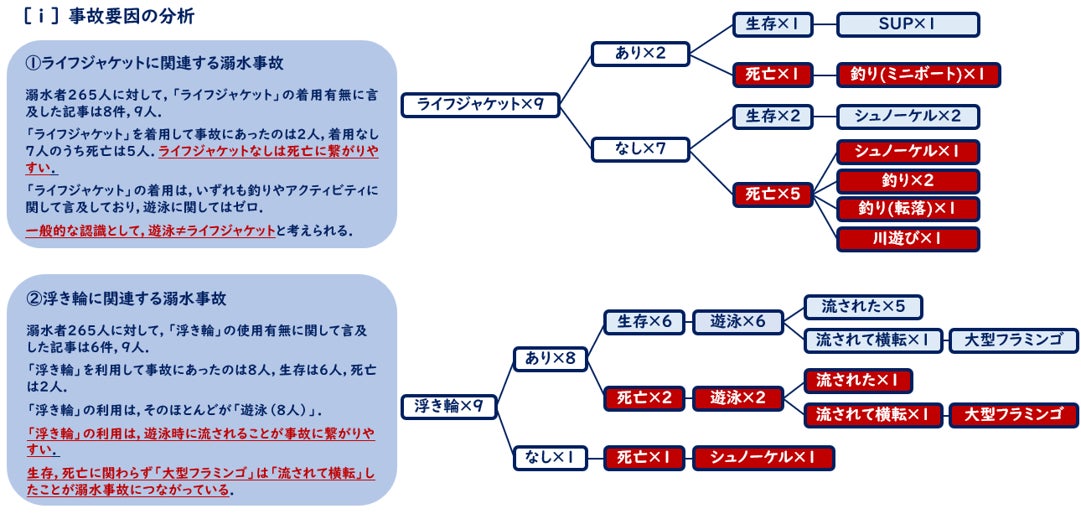*比較分析= 報道データと行政データの事故者数、死者・行方不明者数、年齢別・性別・水域別・日付別構成 などを比較し、報道データの信頼性を評価。