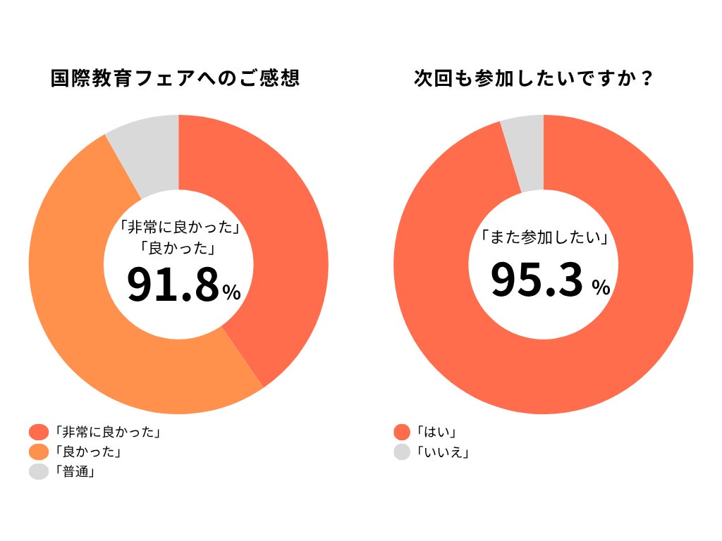 来場者アンケートでは、「非常に良かった」「良かった」と回答した方が東京で93.2%、大阪で90.3%(全体平均91.8%)にのぼりました。また、95.3%の方が「次回も参加したい」と回答しており、来場者の高い満足度がうかがえます。