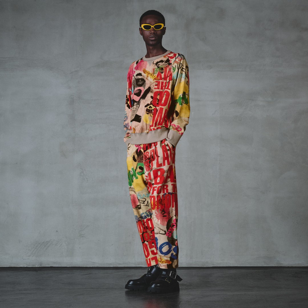 スピードをあげながら目まぐるしく移り変わるカオスな世界をプレイフルに表現した、2025年秋冬コレクションのキープリント「THE BIG ONE(ザ ビッグ ワン)」でラッピングしたティースタンドとキービジュアルがエントランスにてお出迎えします。