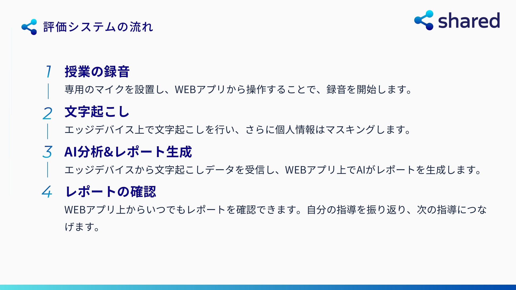 方法:授業の音声を録音・AIで分析し、良点・課題点・今後のステップをレポート化
