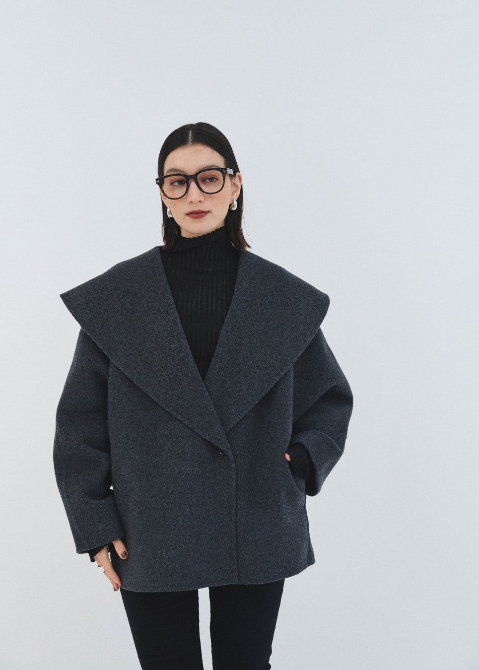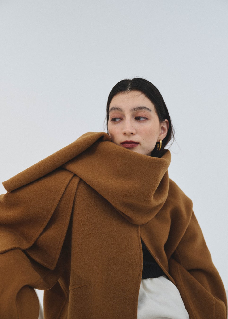 袖に立体感をもたせ、後ろ姿も美しく見えるコクーンシルエットにこだわった。どの角度から見ても美しく、より一層自分に自信を持てるコート。日常シーンのカジュアルをリッチに格上げしてくれる。