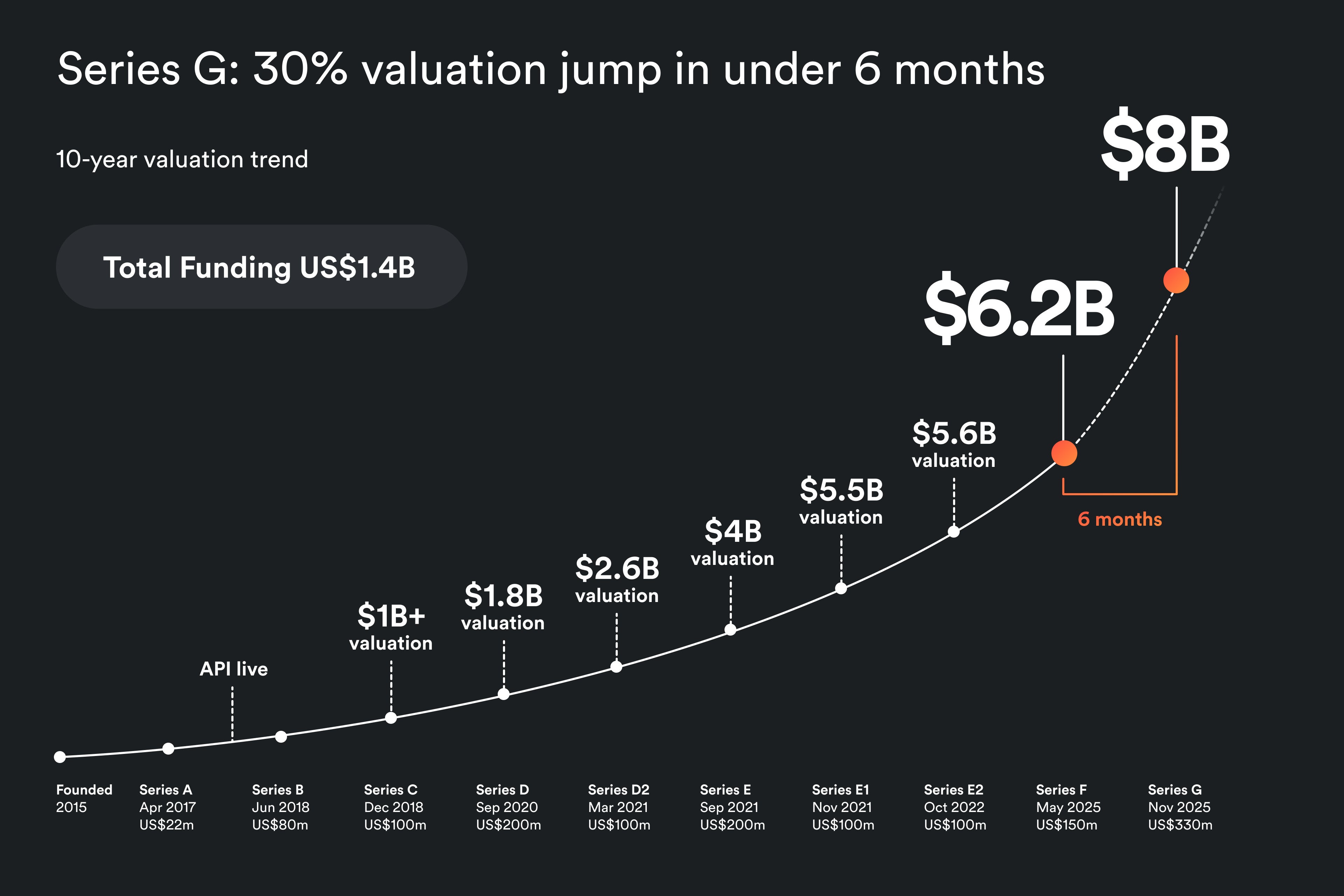 Airwallex、シリーズG資金調達ラウンドで3億3,000万ドルを調達し、企業評価額は80億ドルに