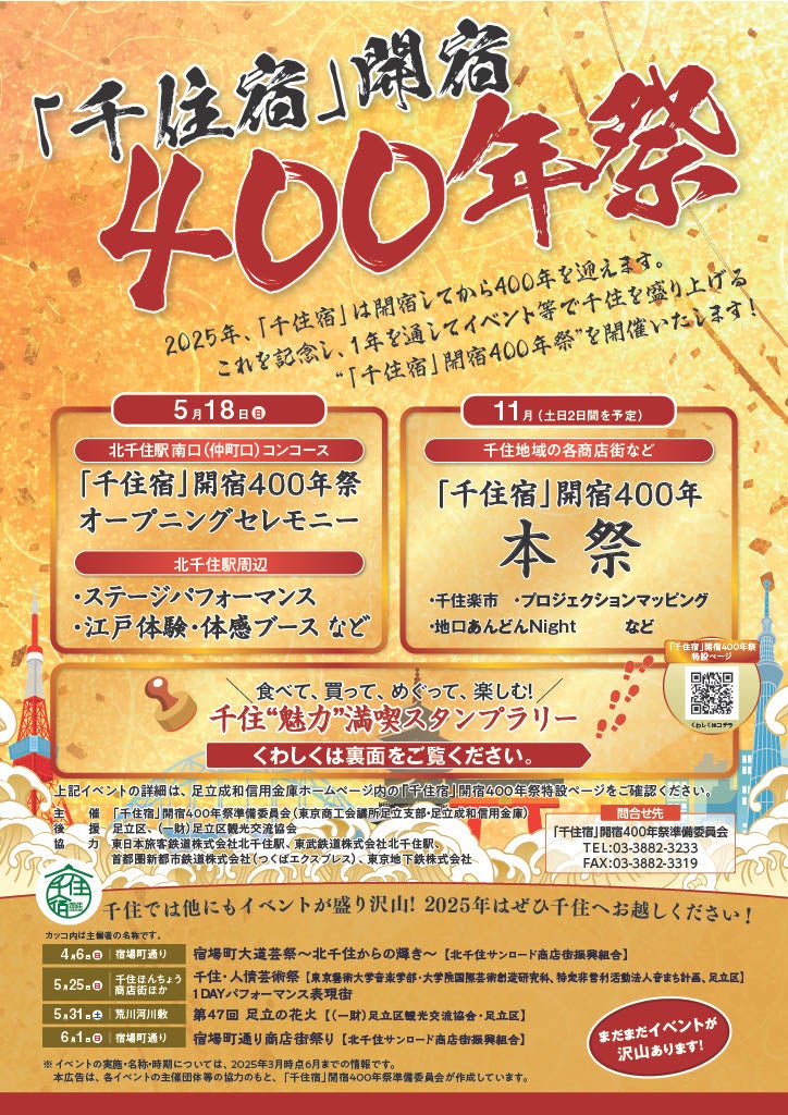 ・主催:千住宿開宿400年祭準備委員会(東京商工会議所足立支部/足立成和信用金庫)