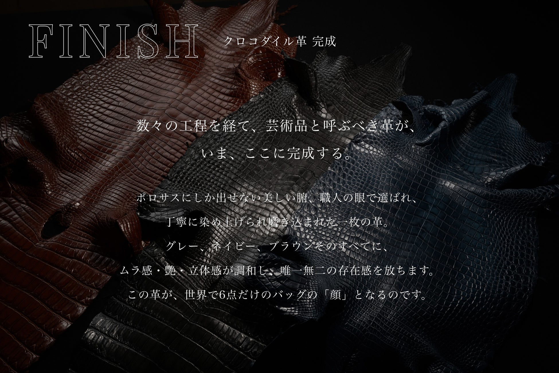 〜革1万枚から厳選し、1つの鞄にポロサスクロコダイルを3枚も使用〜