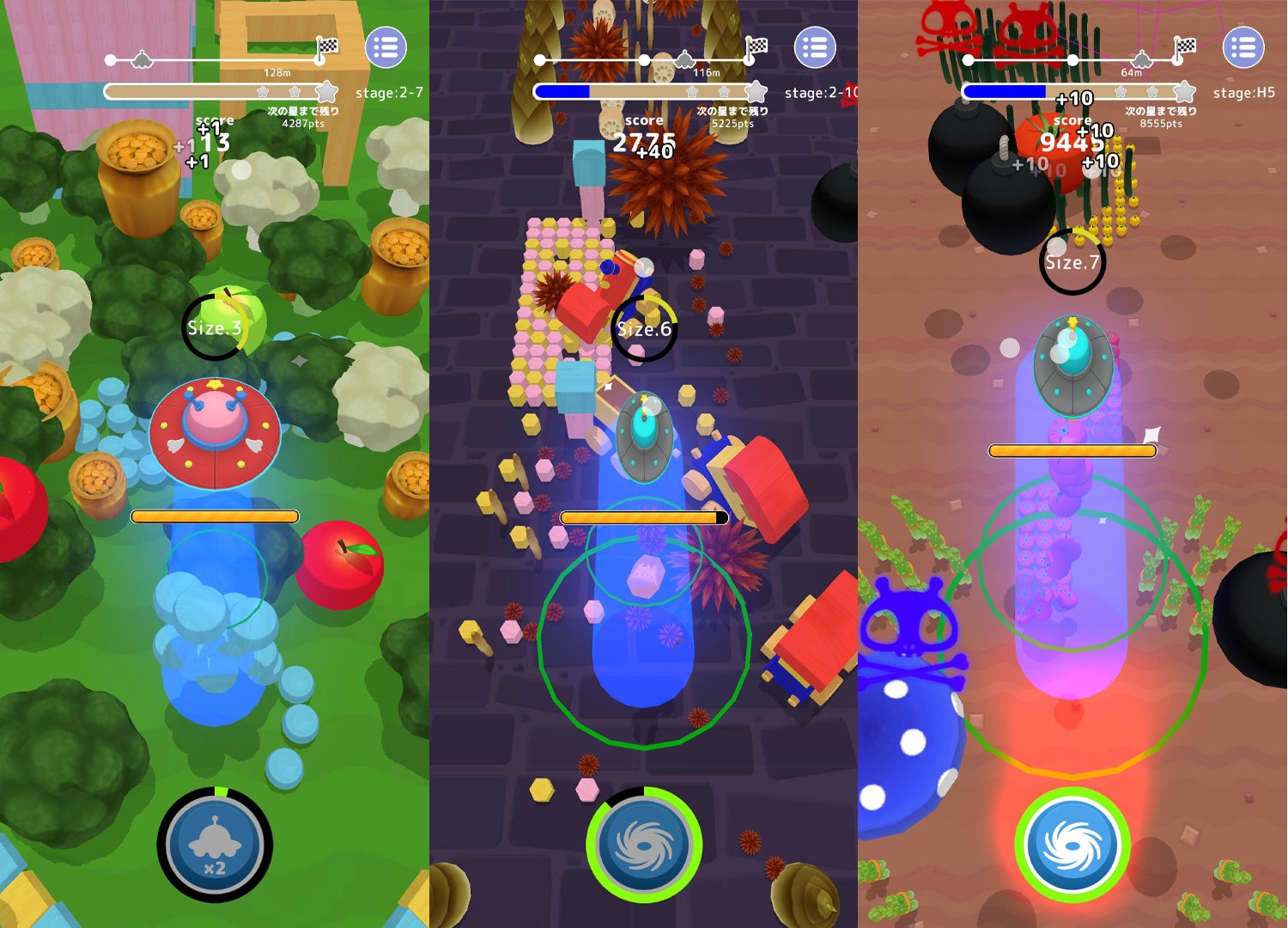 ・吸い込めば吸い込むほどUFOはサイズアップしてより大きなものを吸い込めるようになります。