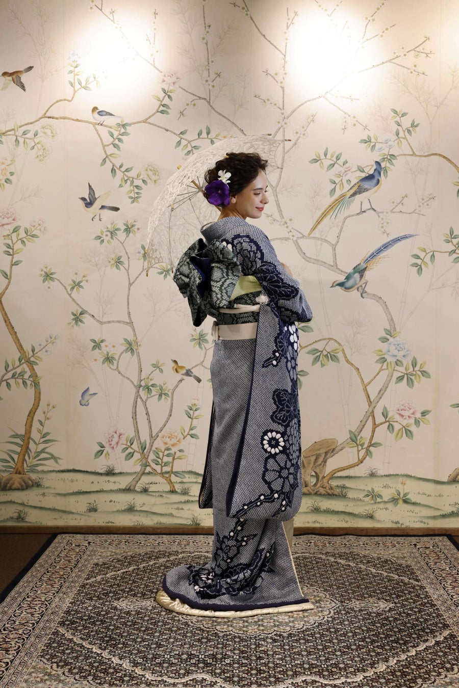 「花嫁に立派な着物を着せてあげたい。」そう願っていた現社長の祖母が、自ら買い付けを行ったのが龍村美術織物、川島織物。あまりの立派な着物だったため、これまで一度も袖を通されたことがなく、大切に保管されていました。萬屋本店ならば再びスポットライトを与えられるのではないかと、衣装店から提案をいただき、約7年前にコーディネートをリブランディング。今では人気の花嫁衣裳の1着となっています。