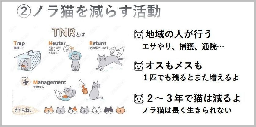 TNRという活動は、人間も猫も、気持ちよく暮らすために必要なんだよ。