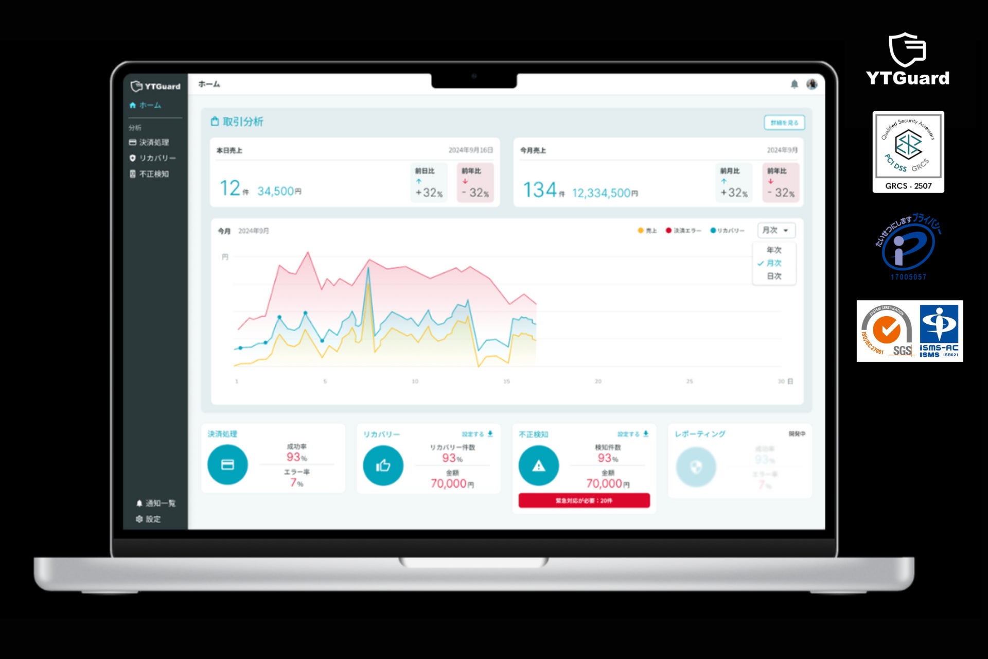 株式会社YTGATE(本社:東京都中央区、代表取締役:高橋祐太郎、以下「YTGATE」)は、2025年5月30日(金)、決済の可視化・不正検知・カゴ落ち防止をワンストップで提供するEC事業者向けSaaS「YTGuard」が、クレジットカード業界の国際セキュリティ基準「PCI DSS」に準拠したことをお知らせします。