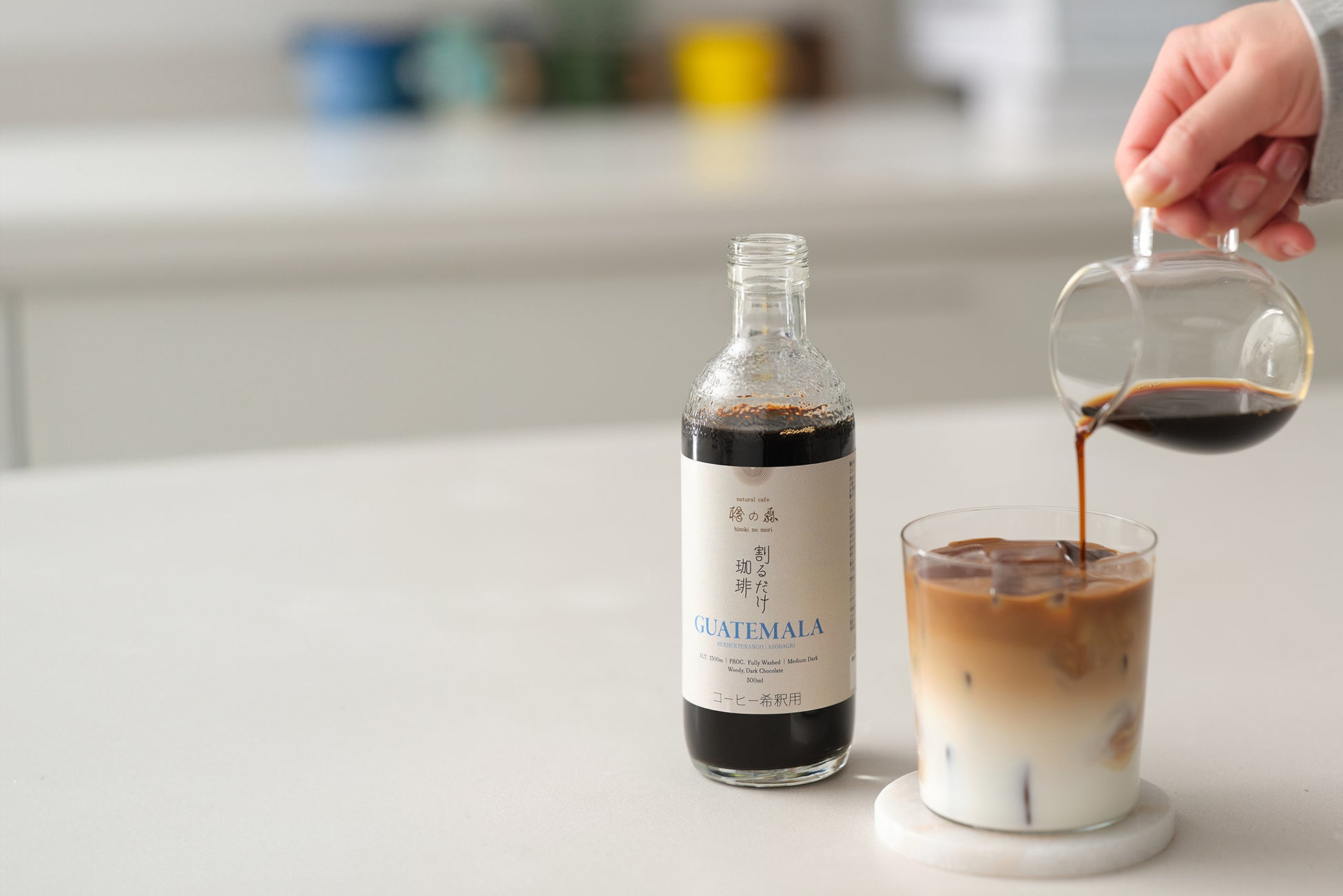 牛乳で割ることによってカフェラテやホットカフェラテとしてお楽しみいただけることはもちろん、水やお湯で割ることによってアイスコーヒーやホットコーヒーとしても楽しめることにこだわって作りました。