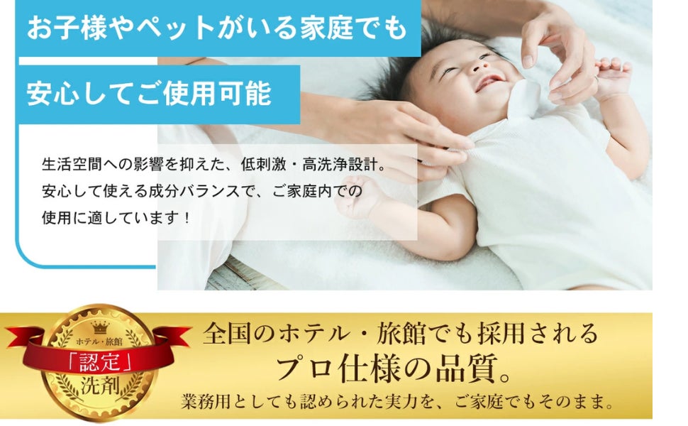 石油系や強酸・強アルカリ成分をできるだけ避けながら、洗浄力・除菌力・消臭力を両立。