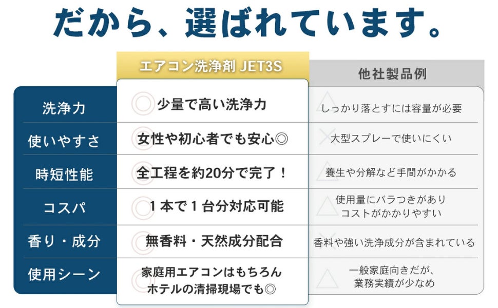 ホテル旅館洗剤専門店スリーエス3Sの"エアコン洗浄剤"「JET3S」がシリーズ累計40万本突破!清掃の現場から生まれた“本気の1本”