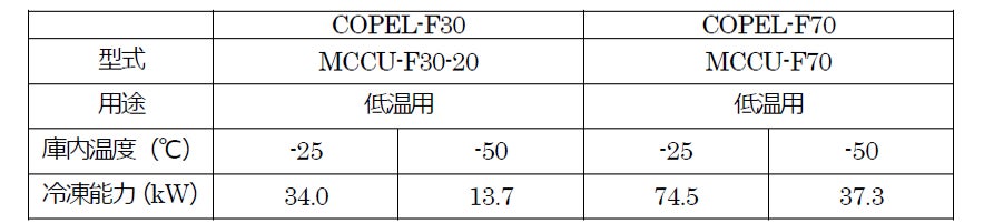 そのなかのCOPEL-F30及びF70を、超低温域(-50℃)を必要とする小規模、中規模施設にも対応可能なモデルとして展開してまいります。