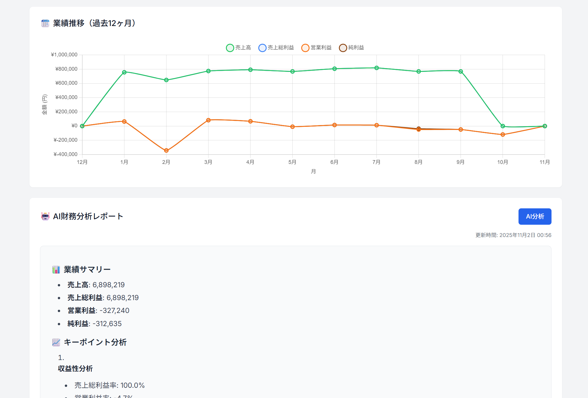 ・リアルタイム更新: データ入力と同時に財務諸表が自動更新
