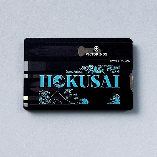 HOKUSAIの名画をまとった、ビクトリノックスの人気アイテム「スイスカード」。ハサミなど日常使いの機能が備わった、防災グッズとしても注目のアイテム。