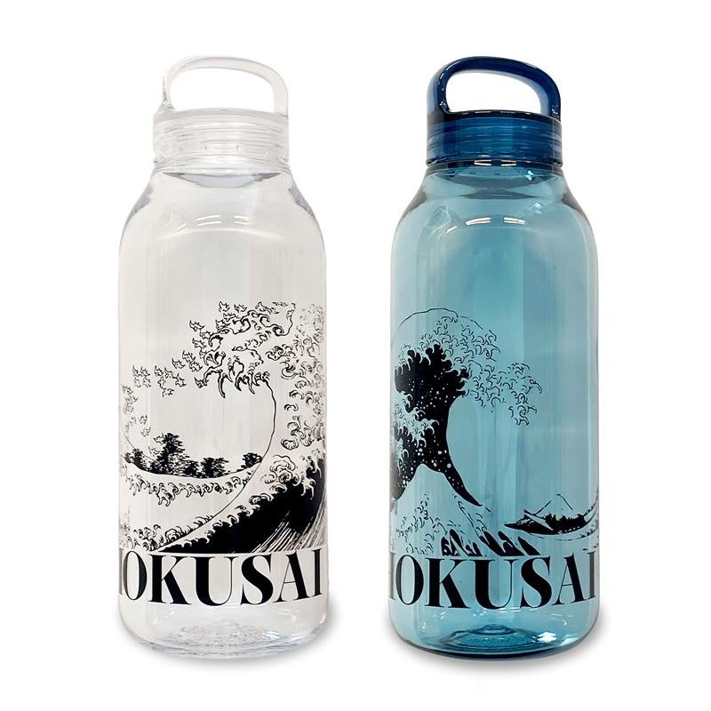北斎の“大波”(『富嶽三十六景 神奈川沖浪裏』)と『富嶽百景』 二編 「海上の不二」がデザインされたKINTO製ウォーターボトル。軽くて丈夫、毎日使える実用性にアートをプラスしました。
