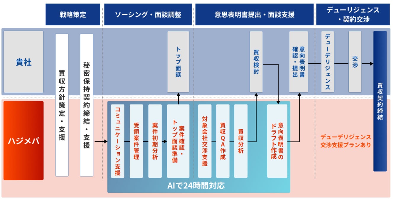株式会社ハジメバは、M&Aに取り組む買い手企業向けに、M&A方針策定~交渉ままでの実務を一貫して代行する伴走型支援サービス「ハジメバ M&A推進室」の提供を開始いたしました。