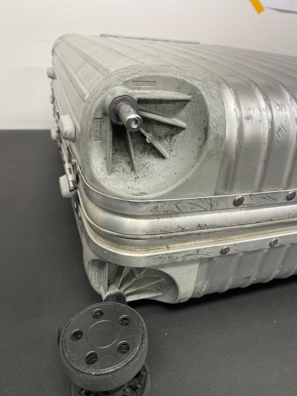 リモワに限らず、スーツケースのキャスターは常に地面と接するため割れ・折れ・タイヤ外れ等の故障が起きやすい部位です。1輪でも破損すると走行が困難になり、無理に引き続けると他のキャスターやハウジングにも負荷がかかります。