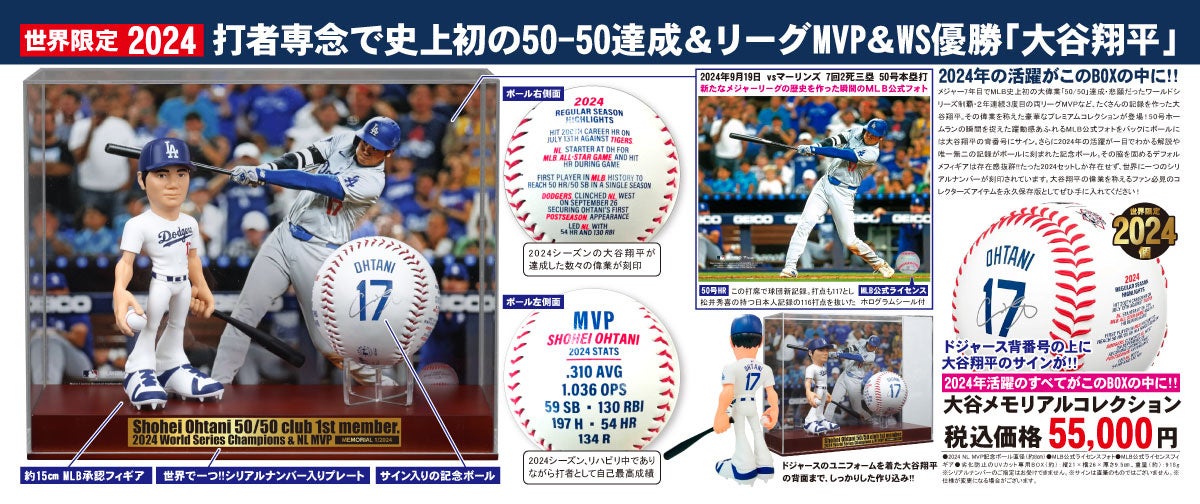 メジャー7年目でMLB史上初の大偉業「50/50」達成・悲願だったワールドシリーズ制覇・2年連続3度目の両リーグMVPなど、たくさんの記録を作った大谷翔平。その偉業を称えた豪華なプレミアムコレクションが登場!