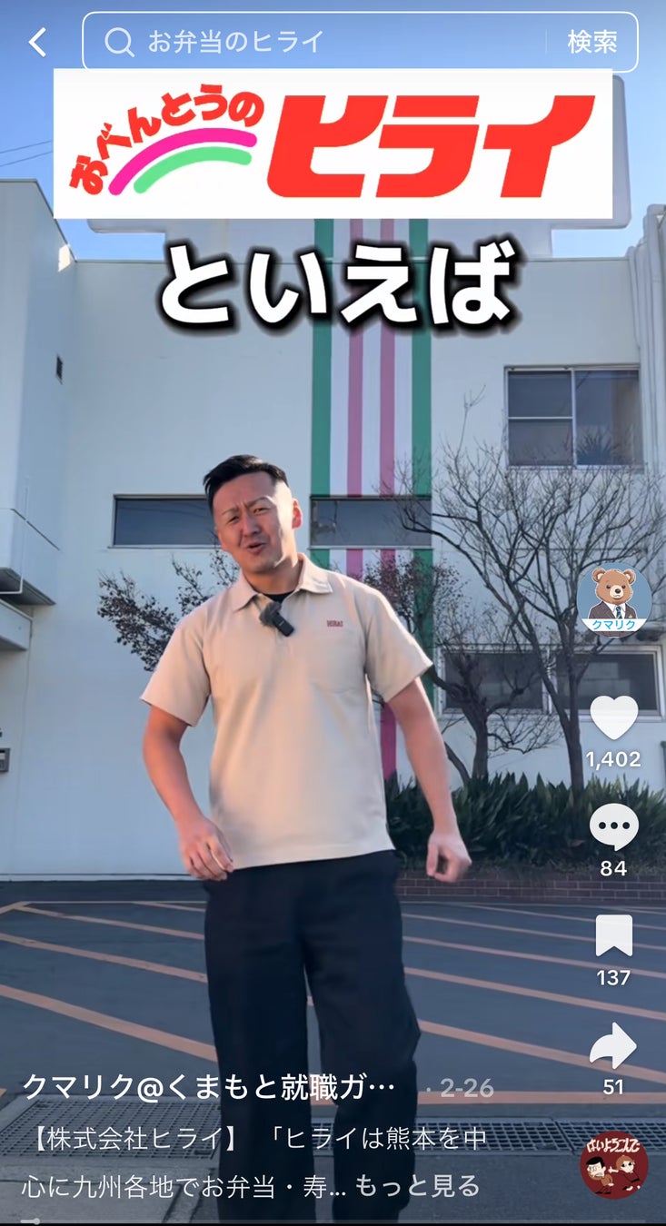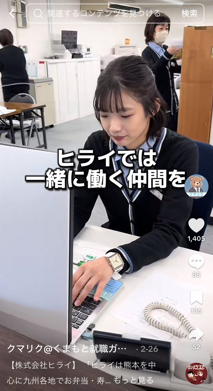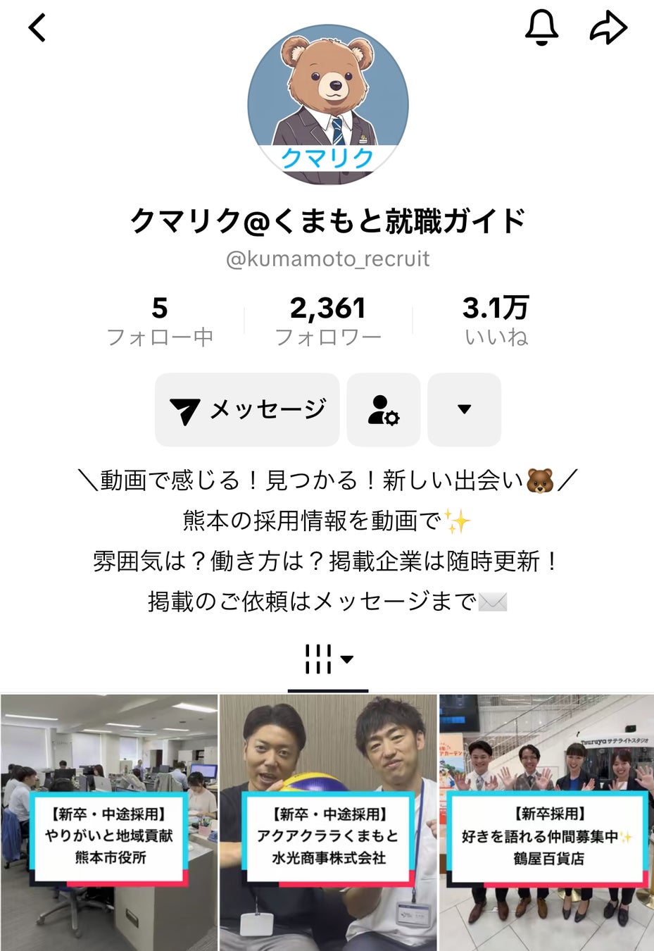 SNS専門総合プロデュースを手がける熊本発のベンチャー企業、株式会社Evoliv(住所:熊本県熊本市北区龍田1丁目24-8、代表取締役社長:永木海)は、熊本県内企業のリクルート情報を、共感性の高い縦型ショート動画で発信するSNSアカウント、『クマリク@くまもと就職ガイド』(以下「クマリク」)のInstagramとTikTokアカウント運用をスタートしました。
