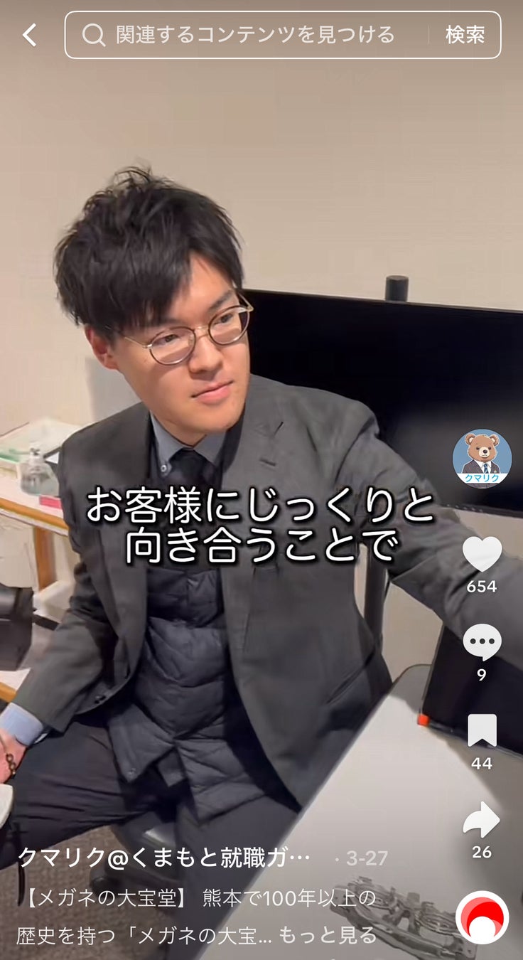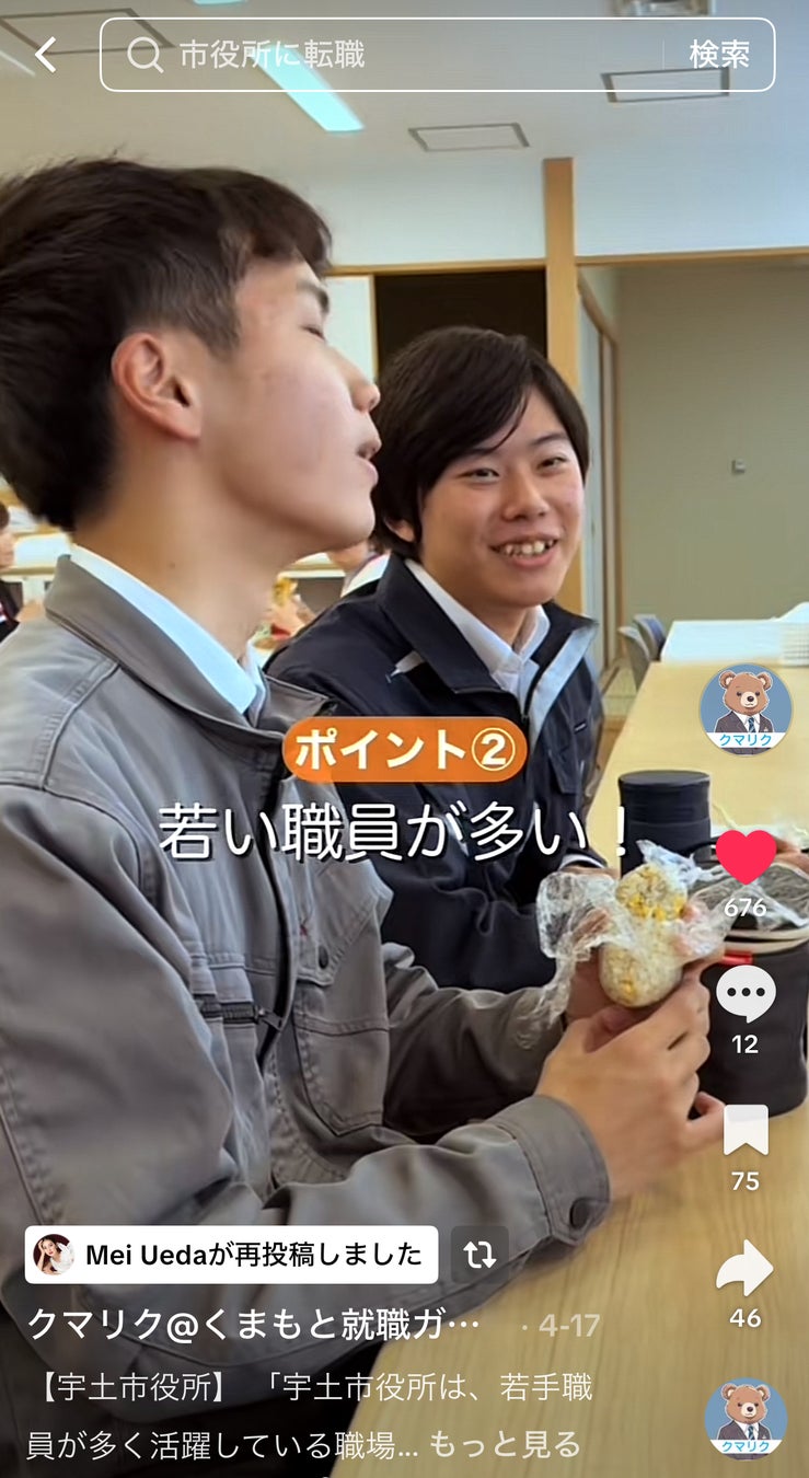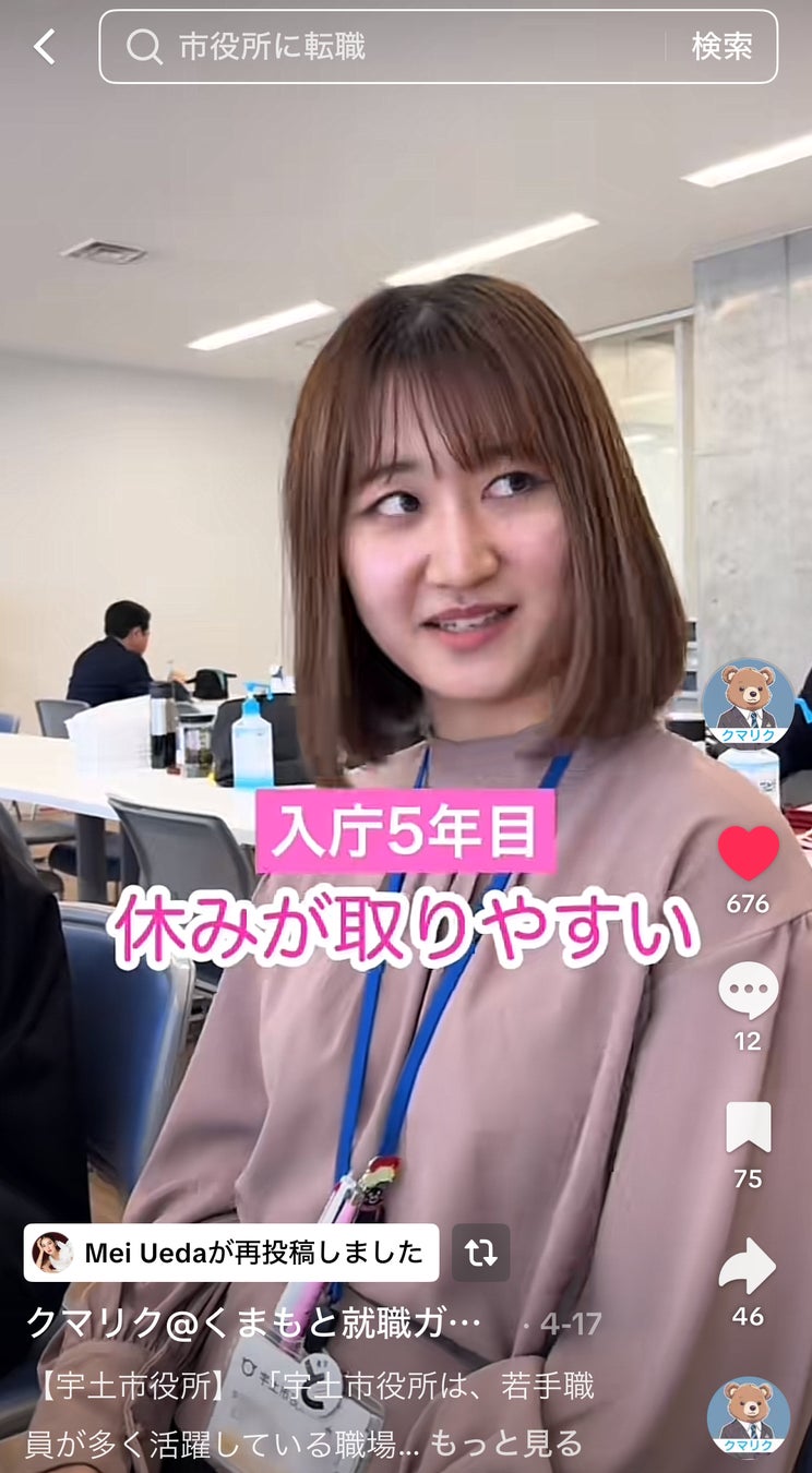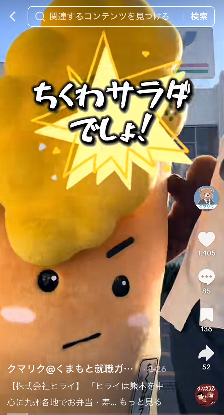 SNS専門総合プロデュースを手がける熊本発のベンチャー企業、株式会社Evoliv(住所:熊本県熊本市北区龍田1丁目24-8、代表取締役社長:永木海)は、熊本県内企業のリクルート情報を、共感性の高い縦型ショート動画で発信するSNSアカウント、『クマリク@くまもと就職ガイド』(以下「クマリク」)のInstagramとTikTokアカウント運用をスタートしました。
