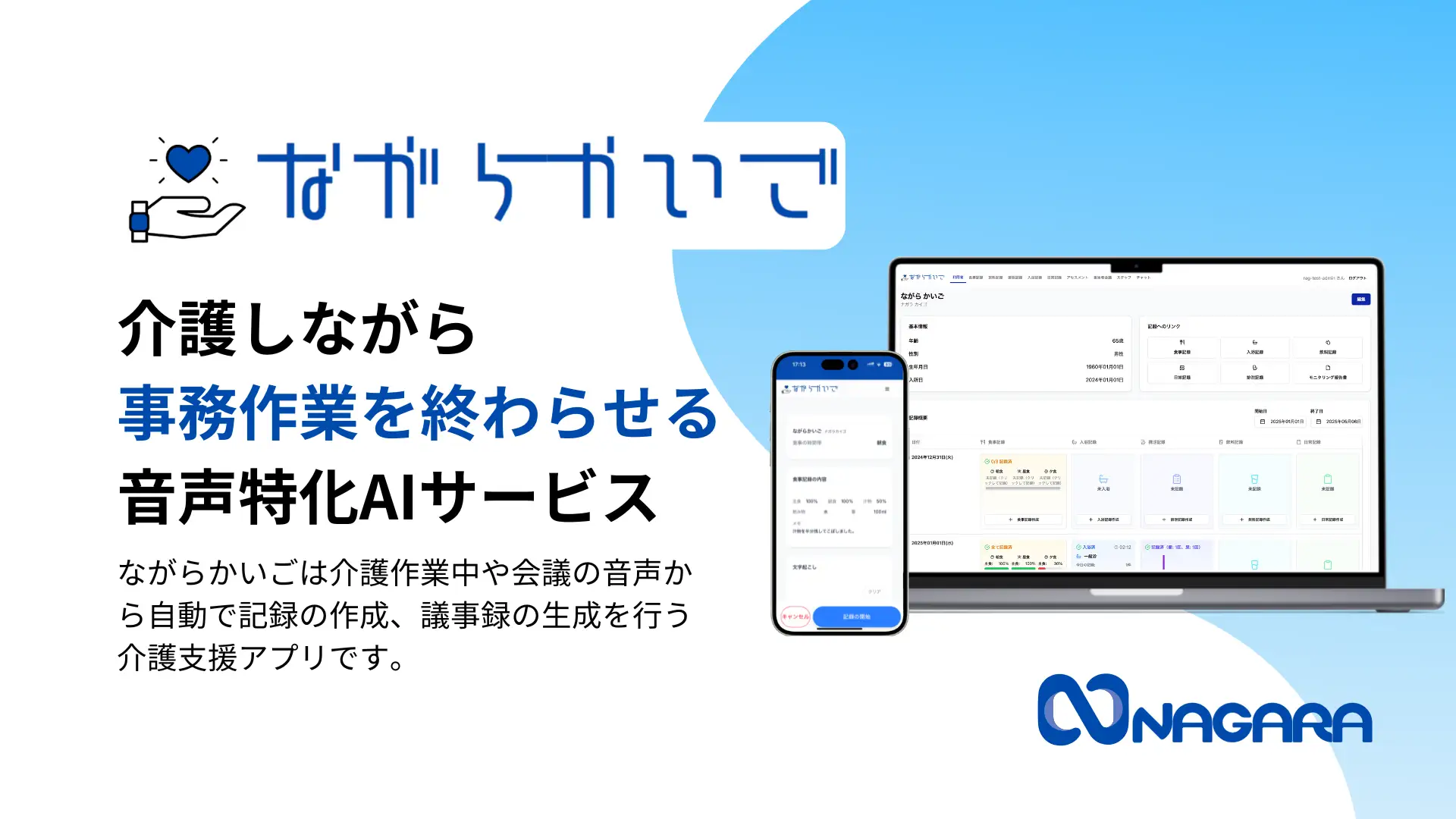 音声特化のAI介護記録「ながらかいご」をリリース