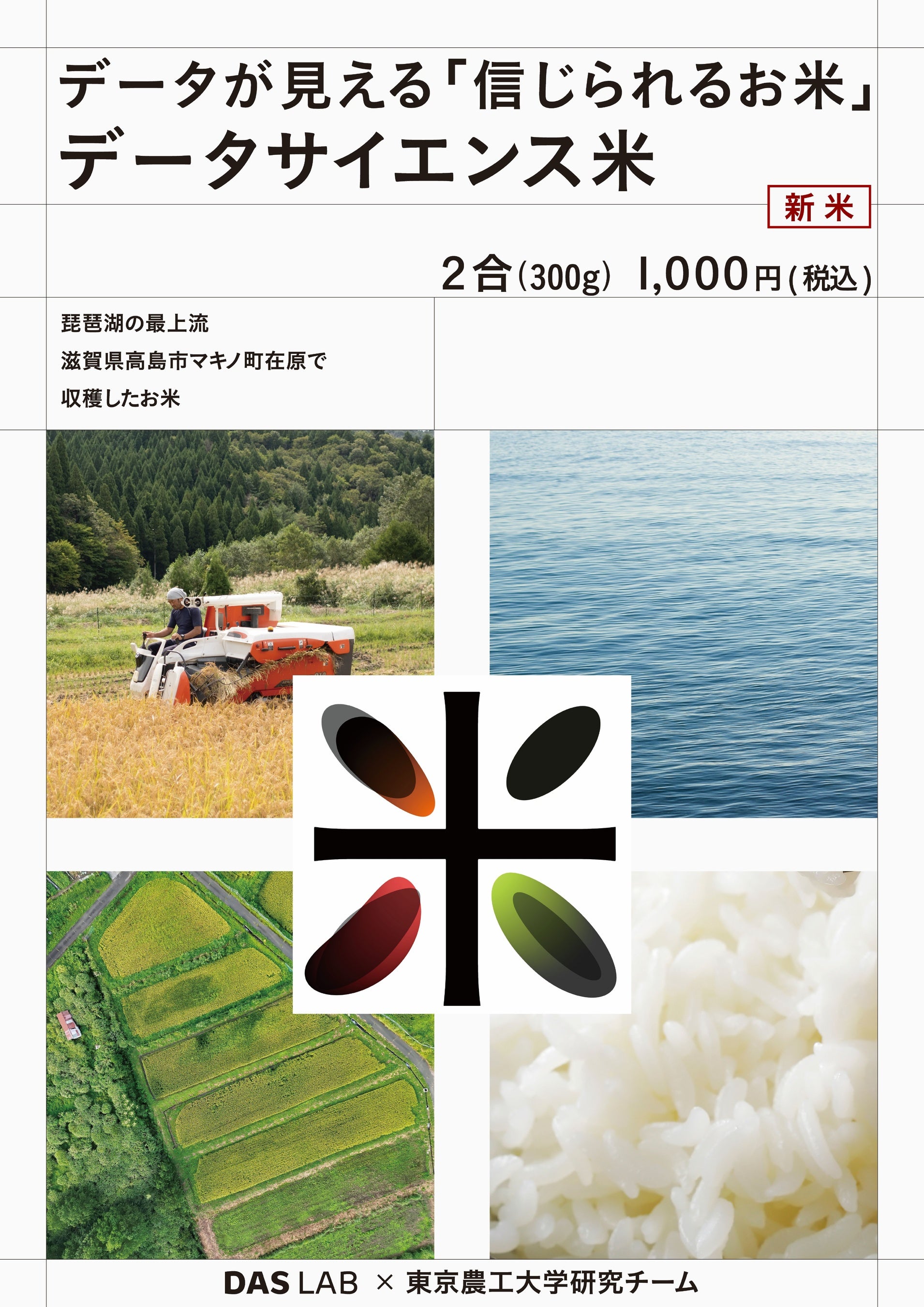 DAS LAB(代表:神野 恭光〈じんの・やすみつ〉)は、東京農工大学研究チームと共同で取得した「環境や米作りにおける生産過程、生産者の想いなど多様な情報データ」をもとに“ハイパー・トレーサビリティ(Hyper Traceability)” を実現する『DAS Rice Mark』の取り組みの一環で、琵琶湖の最上流エリアに位置する滋賀県高島市マキノ町在原の棚田でデータ取得と共に育てた「データサイエンス米」の販売を行います。