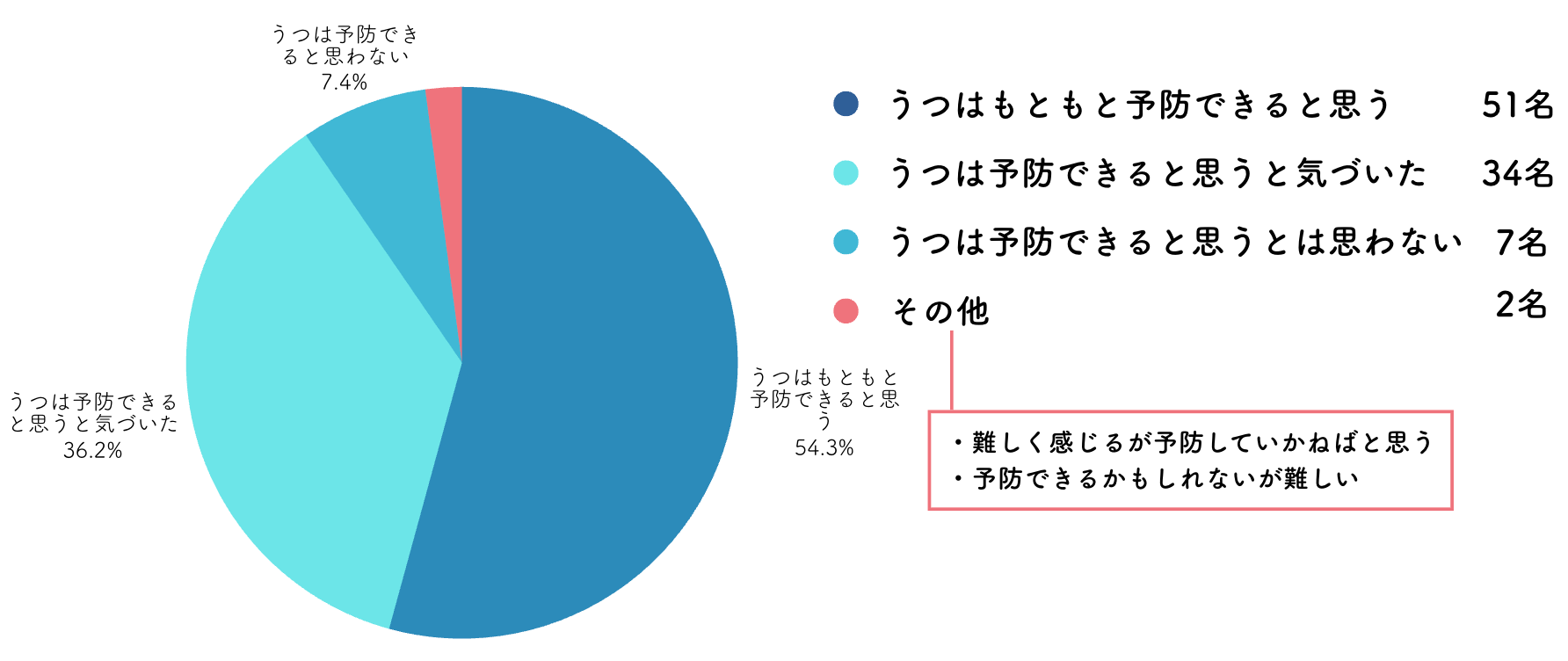 当団体はこれらの課題を重要な示唆として捉え、今後も問題意識を持ち続けながら、より実効性の高いうつ病予防の取り組みに挑戦してまいります。