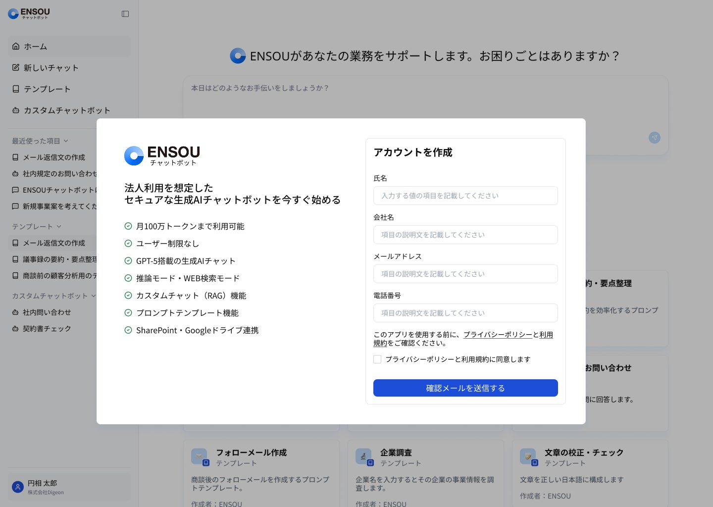 ENSOUチャットボットは、これらの課題を解決するために開発された法人向け生成AIサービスです。