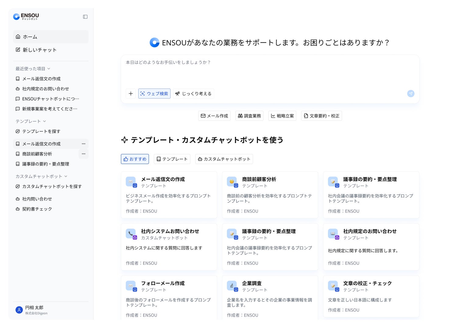 株式会社Digeon(本社:兵庫県神戸市、代表取締役社長:山﨑祐太)は、法人向け生成AIチャットボット「ENSOUチャットボット」において、全ての機能が無料で利用できる「フリープラン」を新たに提供開始しました。