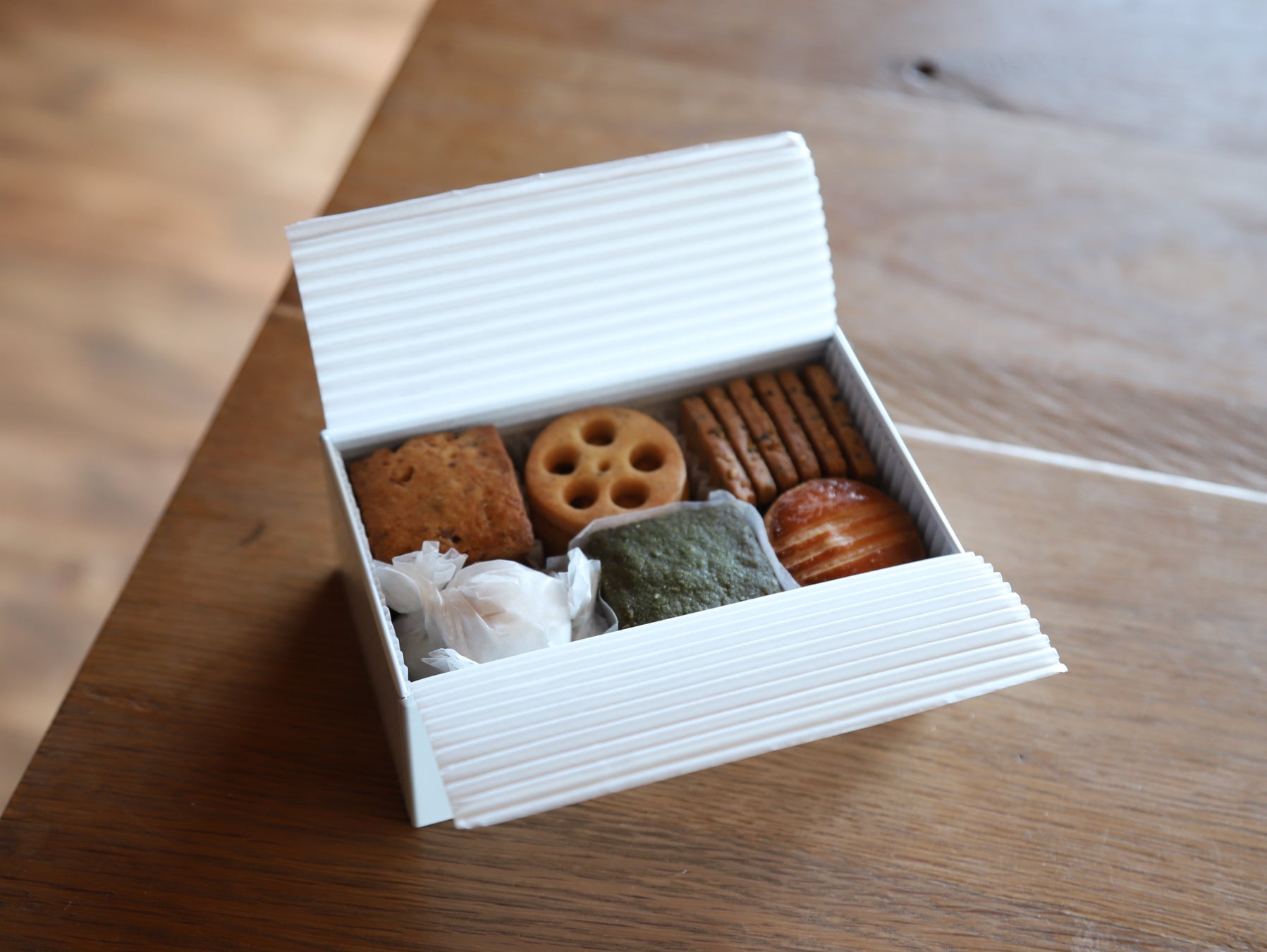ストアのロゴでもあるレンコン型のクッキーが見た目にも楽しく、厳選素材で丁寧に焼き上げたお菓子は、贈り物にも、自分へのご褒美にもおすすめです。