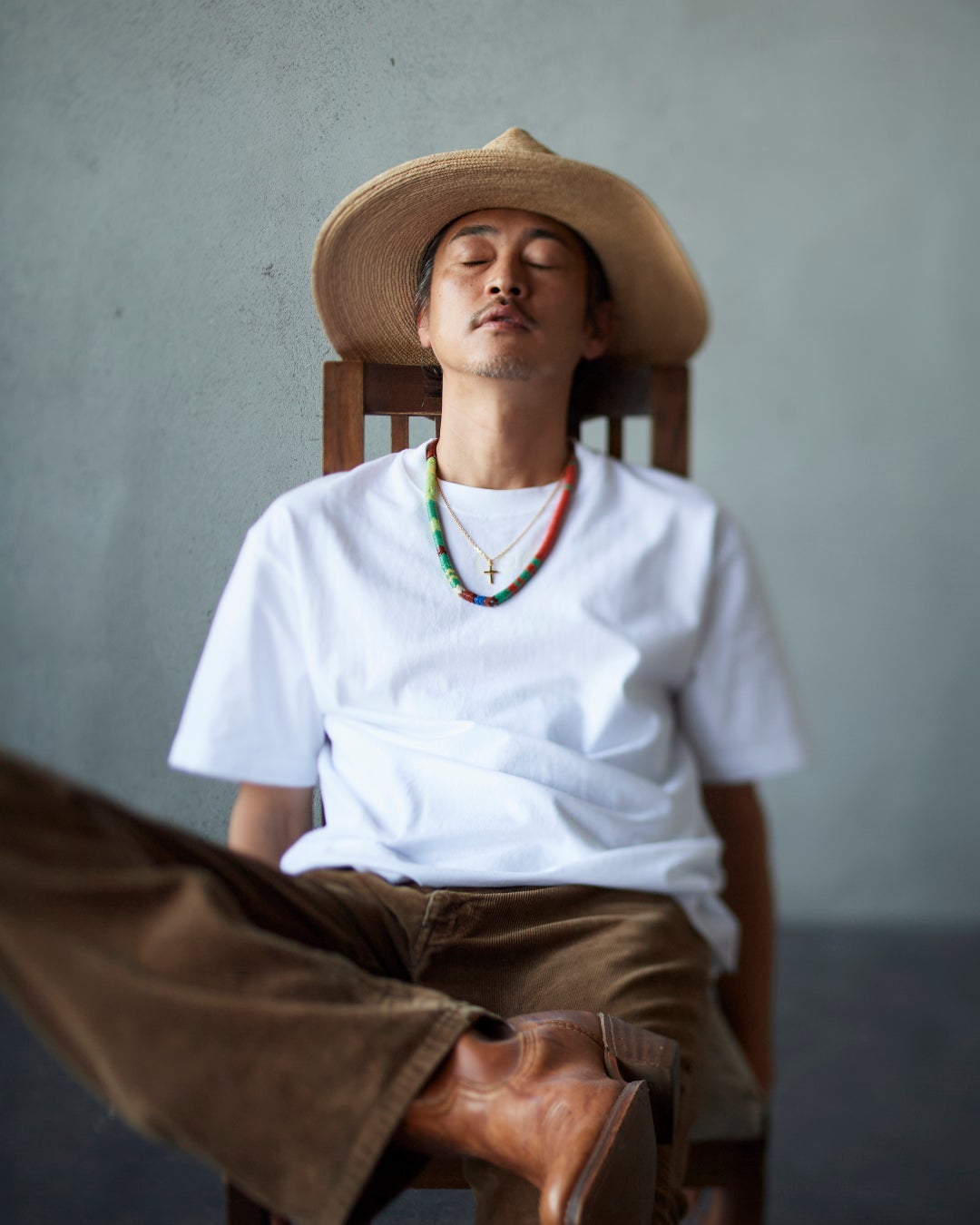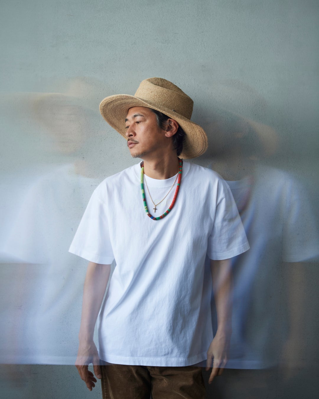 さらに本コラボレーションでは、ホワイトとブラックの2枚組パック仕様にパウダーブリーチ加工を施し、着用と洗いを重ねることでヴィンテージTシャツのような表情へと変化。日常の中で育っていくプロダクトとして提案します。