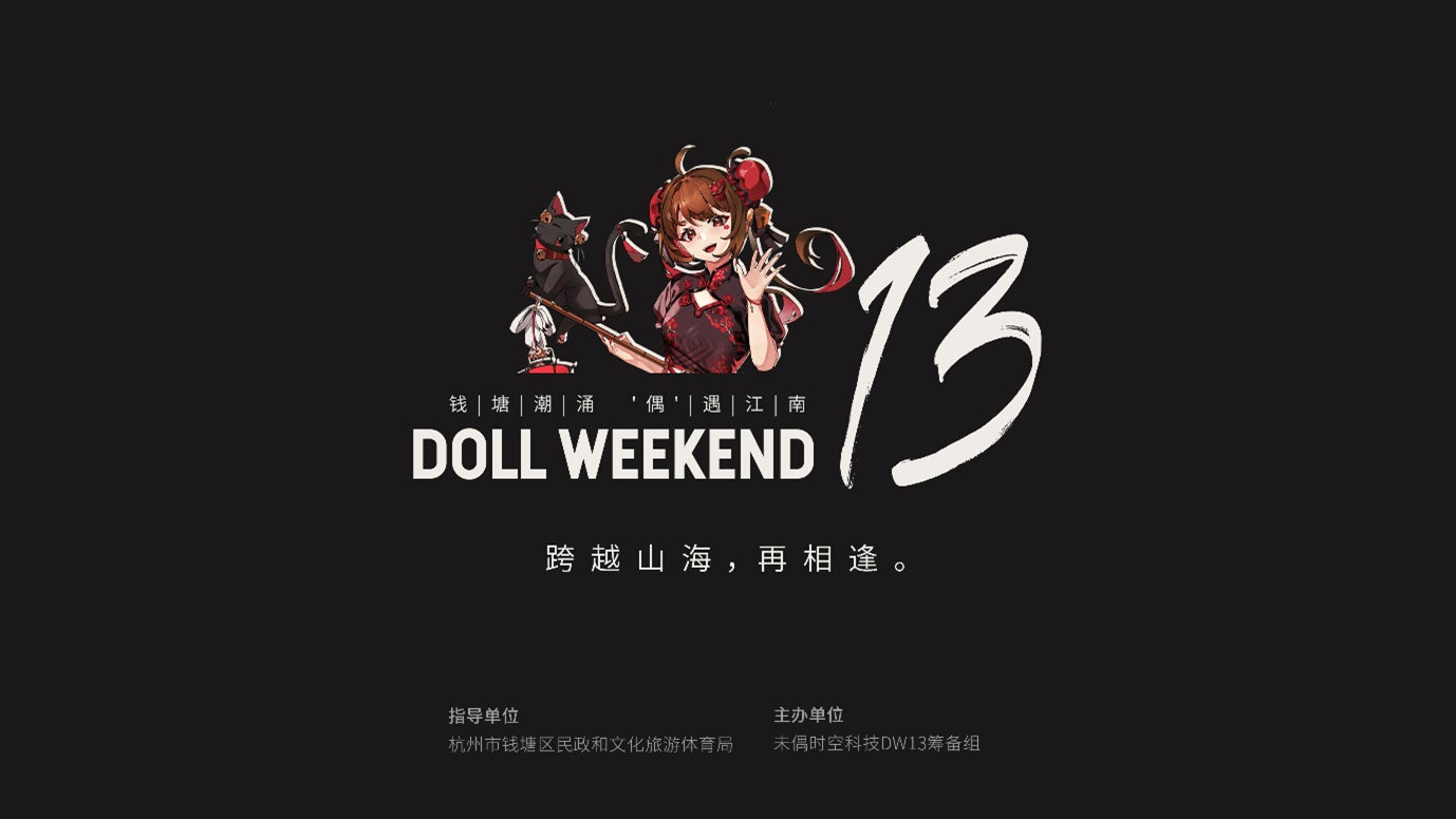 第13回のテーマは従来のコミュニティ内活動に集中したものとは異なり、新たに「銭塘潮涌、偶遇江南」をテーマとしています。(第13回は従来の主にコミュニティ愛好家向けのモードを突破し、「銭塘潮涌、偶遇江南」をテーマに新たな章を開きます。)「Doll Weekend 13」では全く新しい多項目の改革を行い、アニメドールを基盤として、さまざまなアニメやゲーム要素を豊かにし、新年の祝祭の中でドールたちと共に新しい未来を祝福し、世界中からの友人たち、アニメドールたち、新しい参加者たちを最も心のこもったもてなしでお迎えいたします。