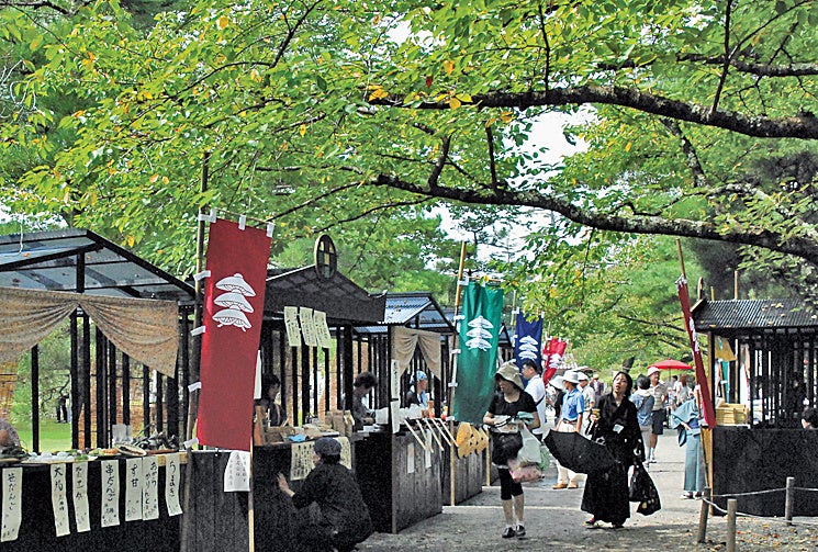 会津若松市の礎を築いた蒲生氏郷公。織田信長公の“楽市”をさらに発展させた「十楽」という制度を城下に敷き、経済・文化振興を図りました。この制度を再現する物産イベントである「會津十楽」では、南蛮寺をイメージしたオリジナルデザインの南蛮小屋を並べ、 時代衣装を身に纏ったスタッフが400年前の時代にタイムスリップしたかのような雰囲気を再現します。