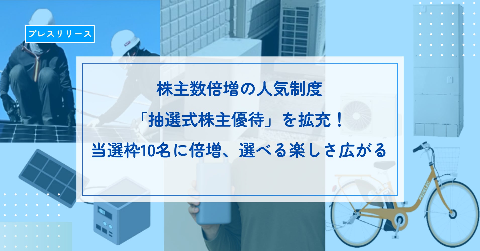 今回の優待拡充は、株主の皆さまに当社グループの省エネサービスをより身近に感じていただくとともに、株主の皆さまに「暮らしを豊かにする体験」「環境貢献」「防災の安心」をお届けする制度としてアップデートいたしました。