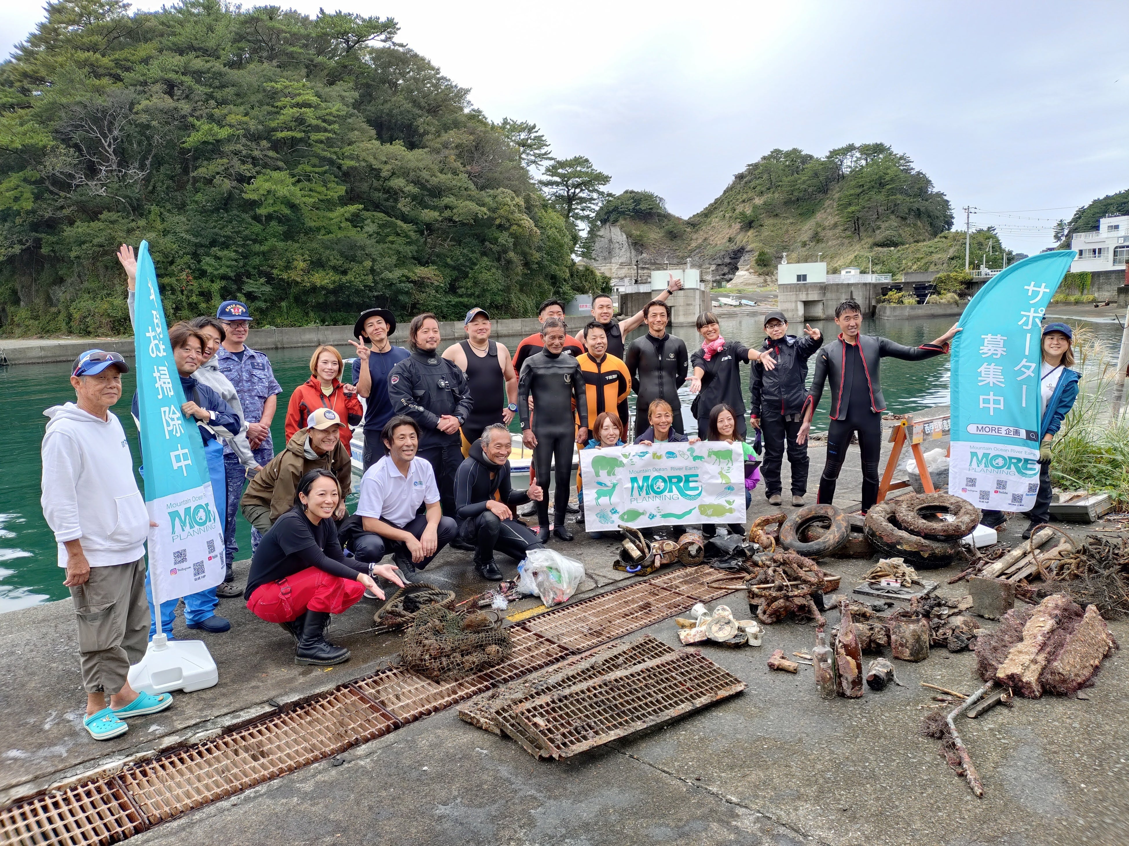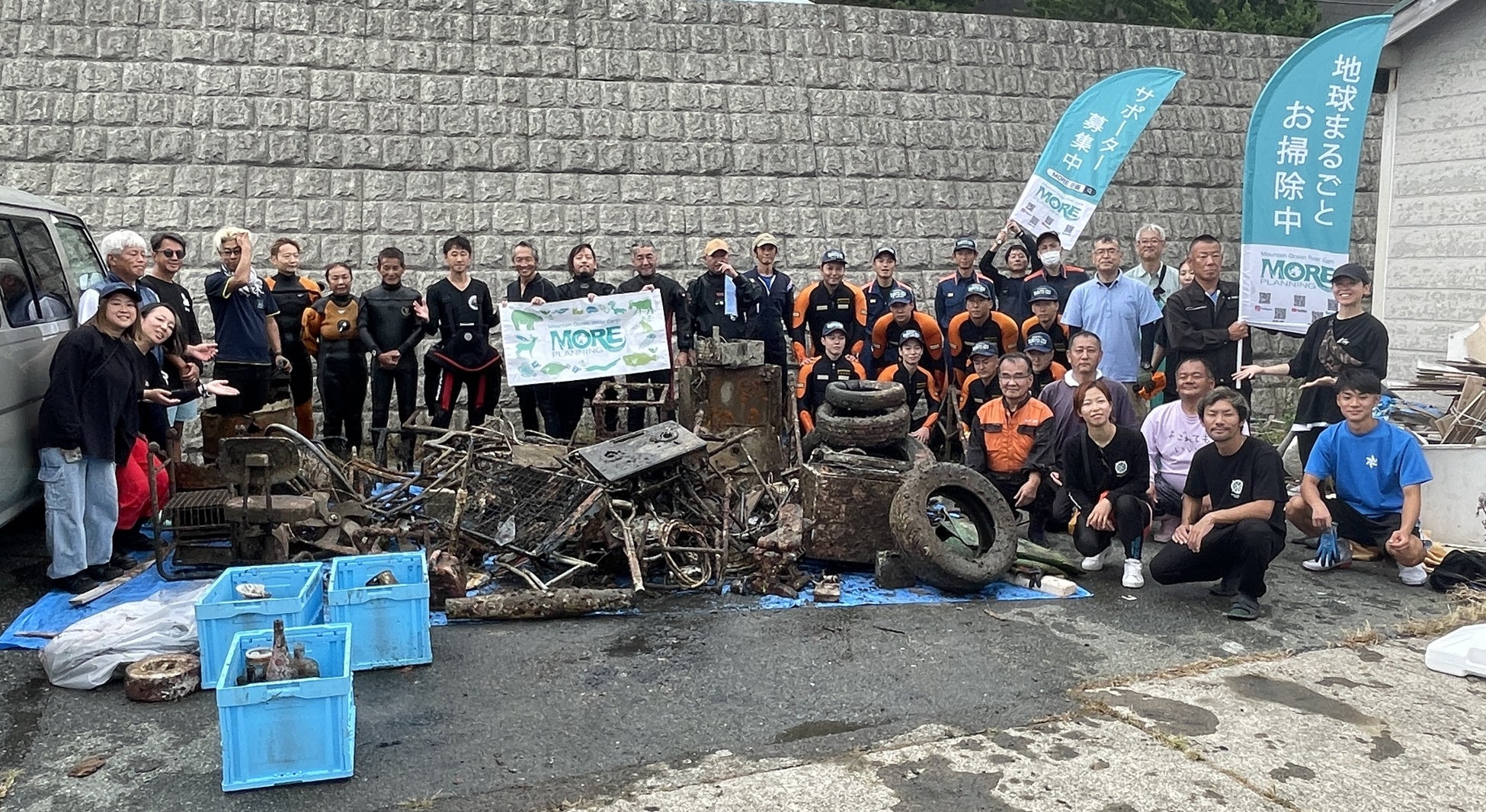 通常、ダイビングや海水浴は管理された場所でのみ許可されており、港湾エリアなど一般人が立ち入れない場所には、長年にわたりゴミが蓄積し続けています。MORE企画では、各自治体や漁協と交渉を重ね、特別許可を得てプロダイバーによる水中清掃を実現。