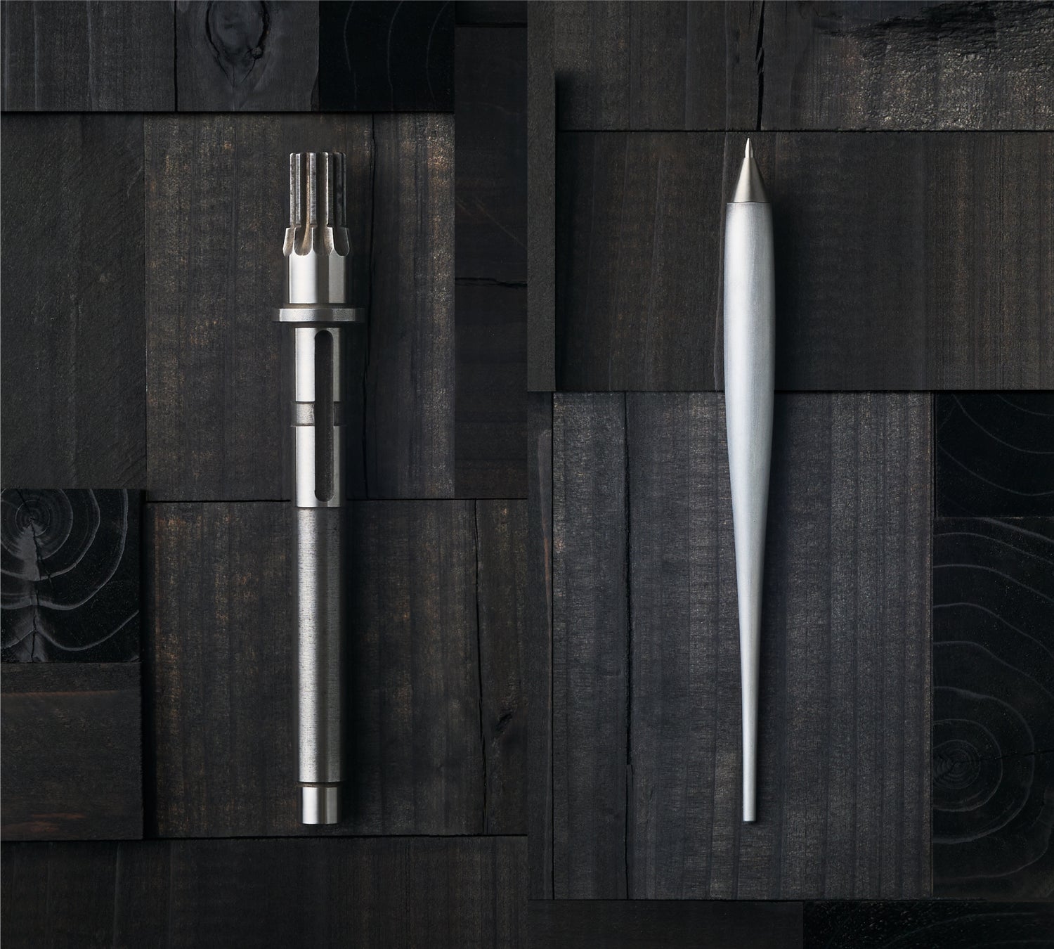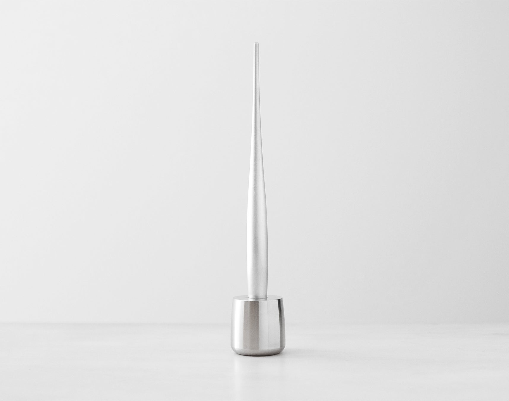 金属の塊から旋盤加工で生み出した、素の造形美。金属加工の技術を手元で感じられるペンホルダー。