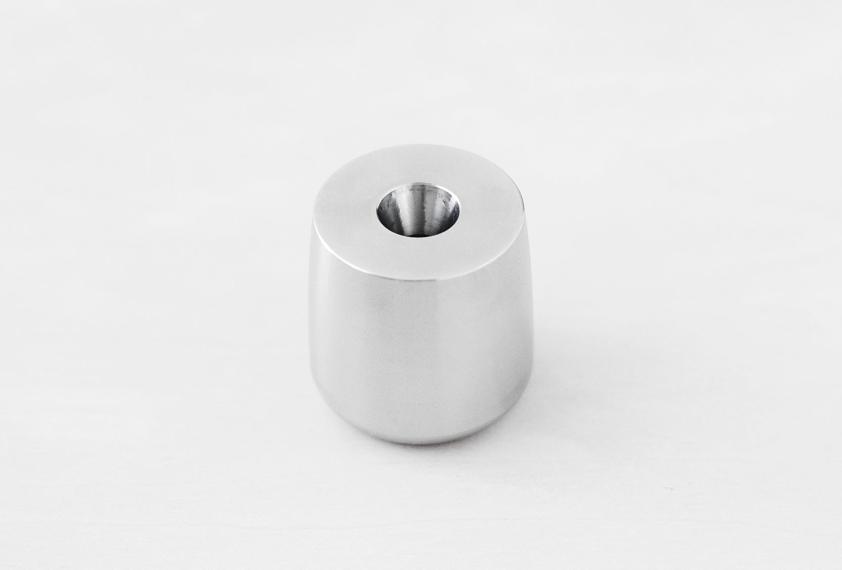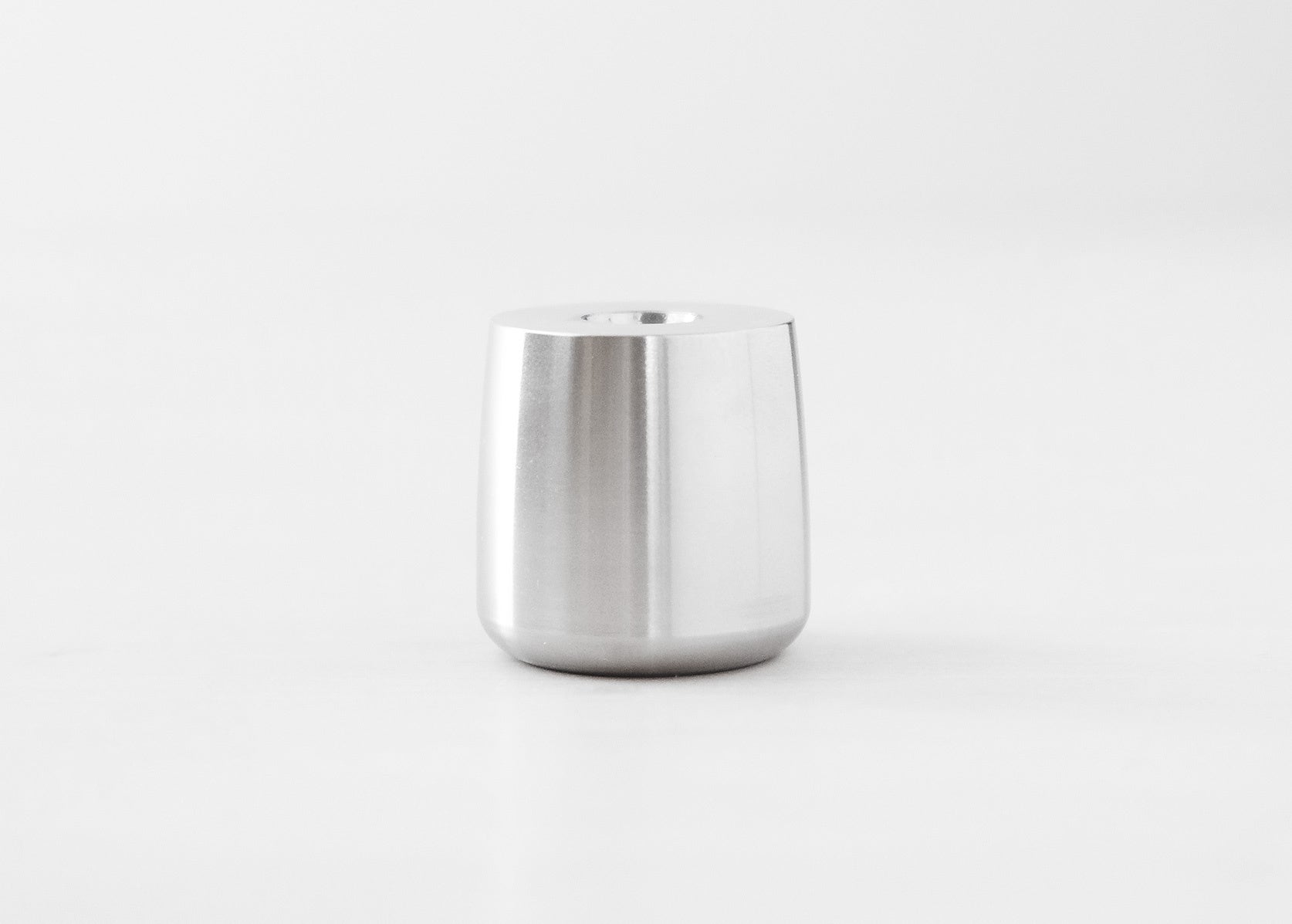 ステンレススチールの塊からNC旋盤で削り出しました。3cm四方に収まるコンパクトな佇まいでありながら、金属無垢材ならではの重さを感じられます。